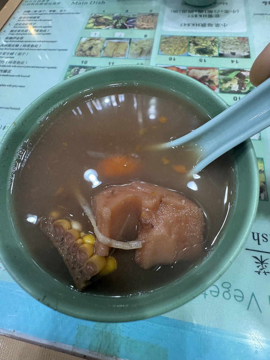 The vegan Pumpkin, Chestnut and Tofu was good. Would have preferred a bit more seasoning and some spice. The Vegan Eggplant and Green Peppers dish was also similar but slightly better as it had a bit of soy sauce. The soup was provided was plain as well.