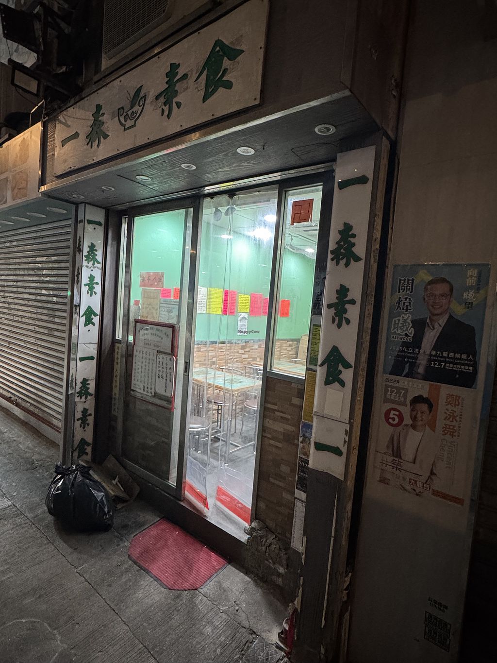 一森素食, at 油麻地窩打老道9-11號地下11B號舖, is a Hong Kong style vegetarian eatery. Yat Sum means "One Forest." Apr 2021 reported fully vegan, despite the name. No MSG. Nearest MTR is Yau Ma Tei exit B2. Open Mon-Sat 11:00am-10:00pm. Closed Sun.