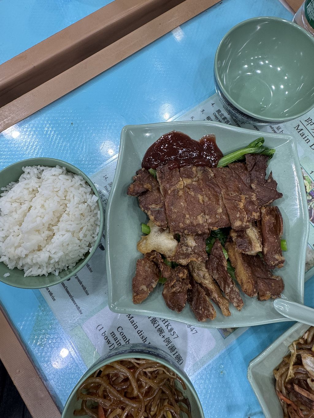 Super tasty food and really welcoming personal. The place is small and atmospheric, feels really authentic to Hong Kong. For 55HKD you are getting a main dish rice soup. Today I ate here twice and the food was so delicious! Yummy! Definitely coming back and bringing my friends😄