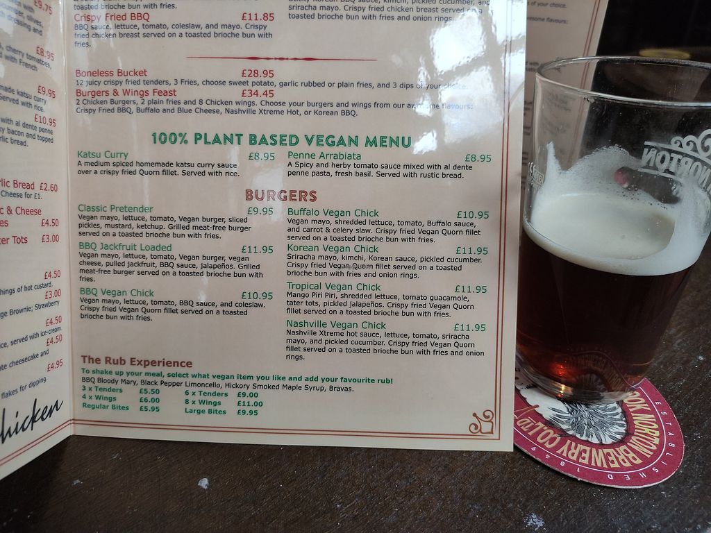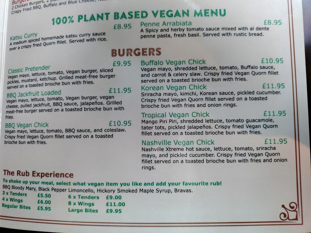 BBQ loaded jackfruit burger with fries, rubbed bites and wings, garli…