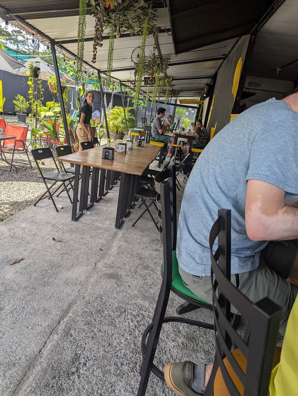 Terrible, greasy vegetarian food and bad service. Waitress would not let us sit at a table so we sat at a dirty bar and ate the worst food I've had in Costa Rica. My vegetables were microwaved tasted like cardboard. I've had better food in school cafeterias.