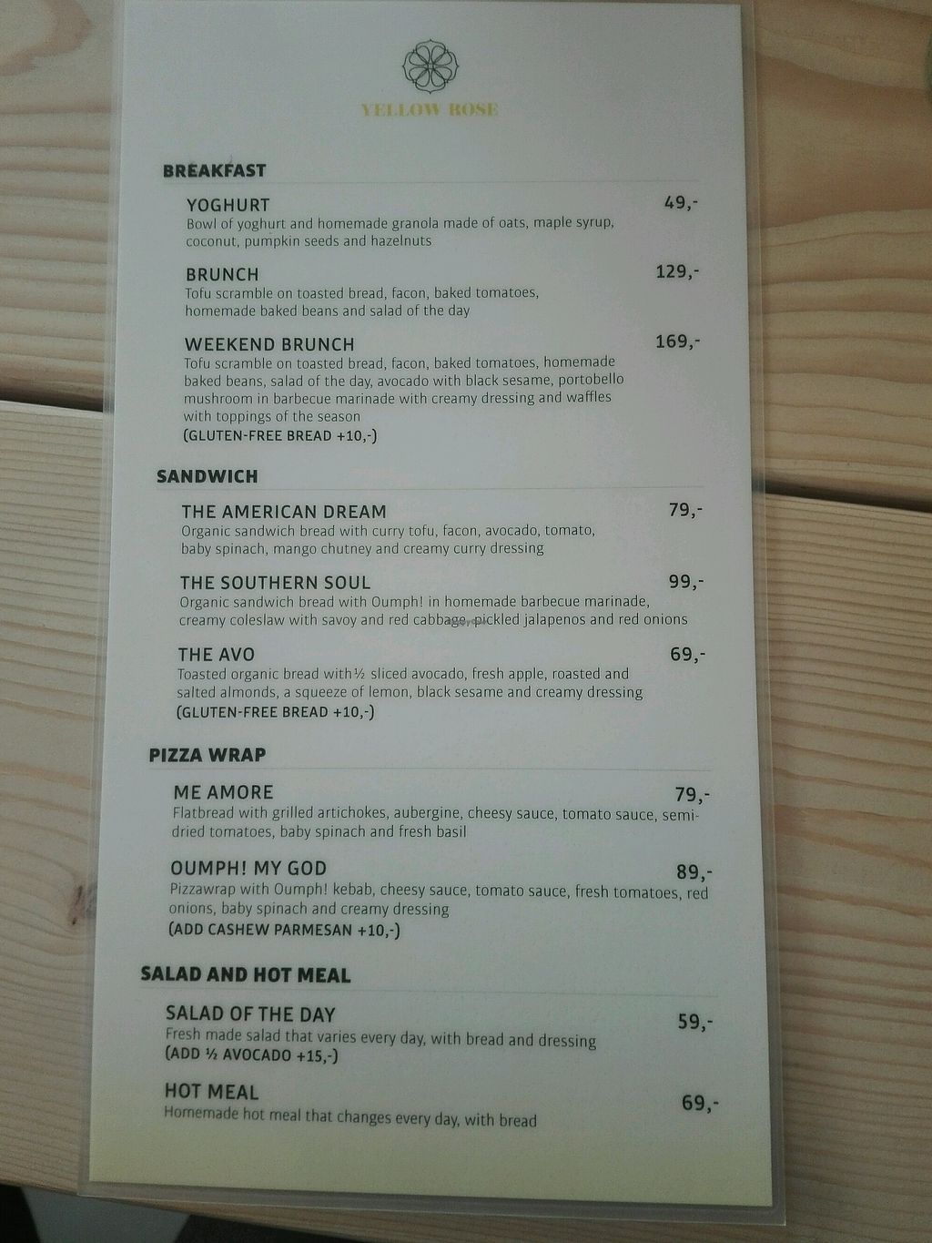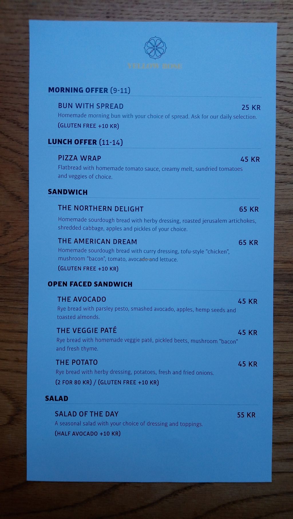 Yellow Rose is a nice and cosy restaurant in the center of Copenhagen. It offers a good variety of cakes, a vegan brunch, ice creams and sandwiches. The place is very pleasant, the staff super-friendly and the food delicious. I had the brunch, took sandwiches and cakes. Everything was very tasty, nicely presented and fresh. It's a must-go in Copenhagen!