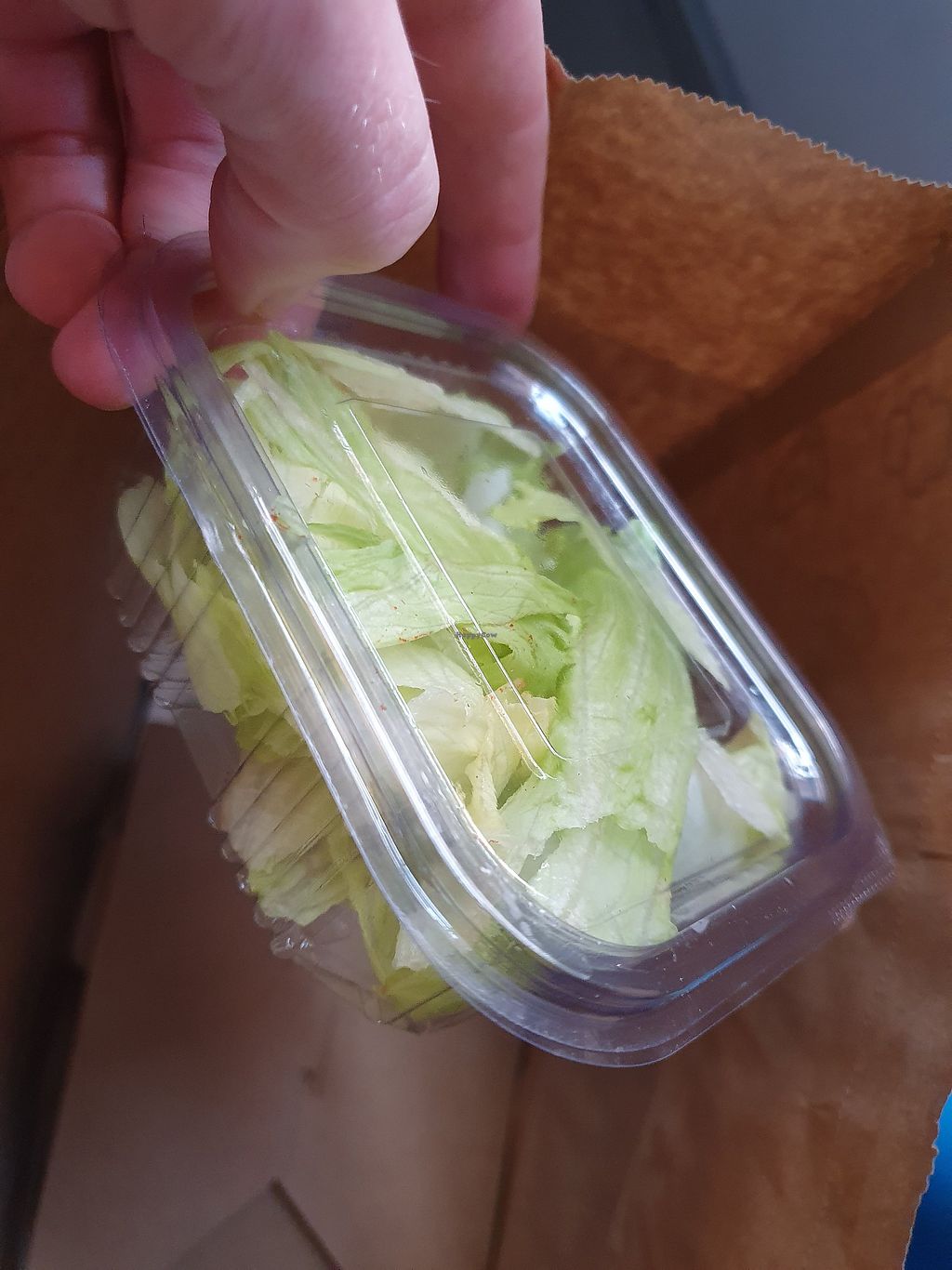 The iceberg lettuce packed in a plastic container made my heart cry. Why? I would opt for no "salad" if I knew.