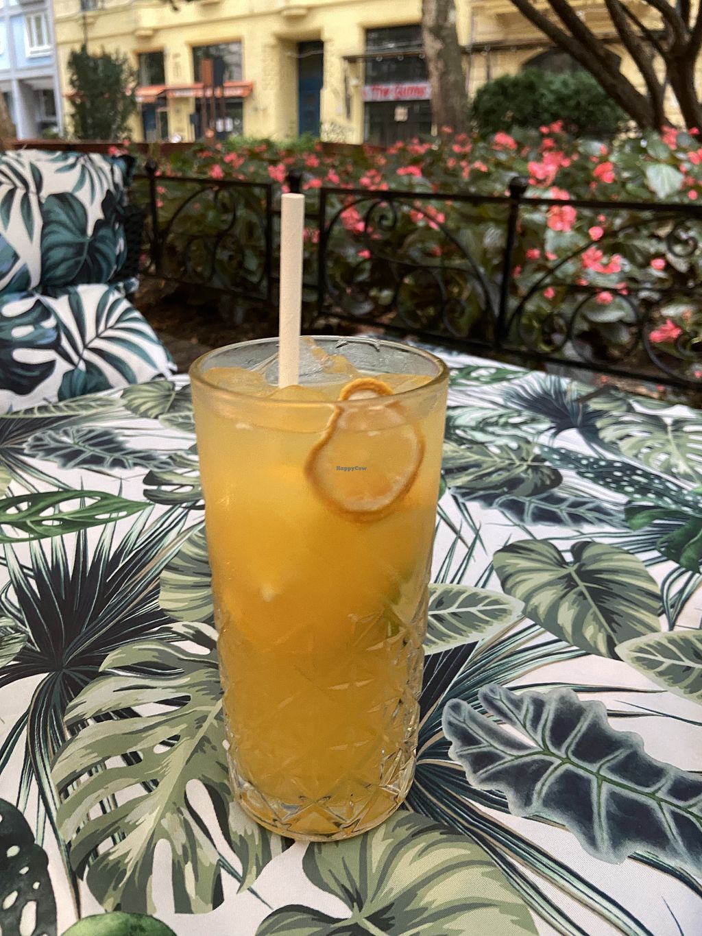 The food was filling, but not very well seasoned. The sidewalk seating was lovely and there were some beautiful flowers rather than cars and traffic on the pedestrian only street.