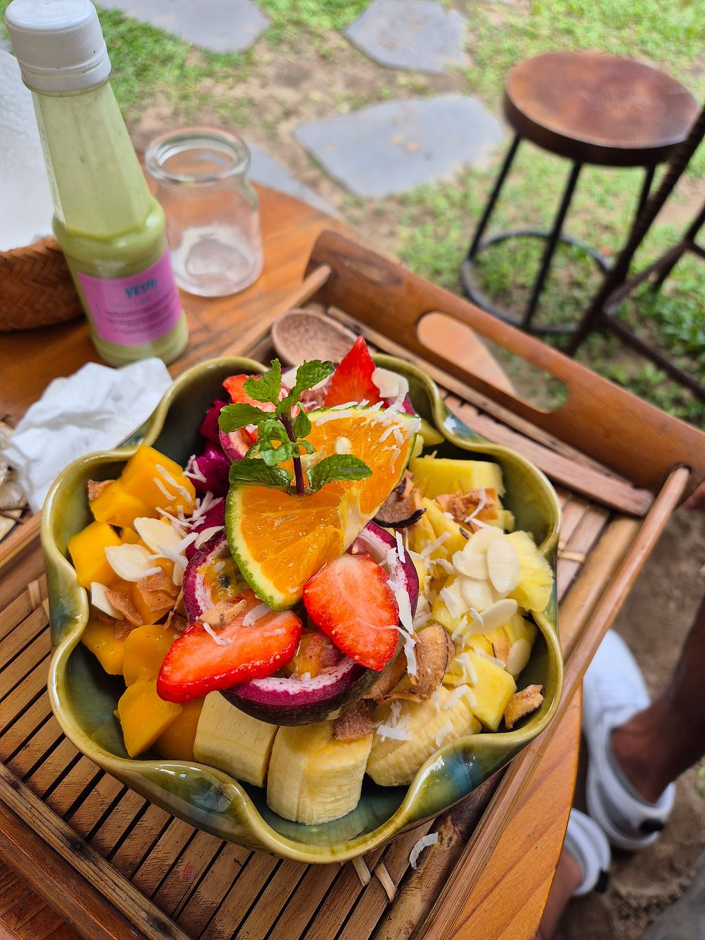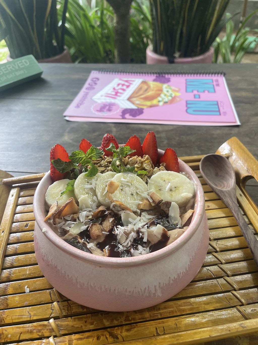 Such a chill little garden area. Delicious smoothie bowl and juice.