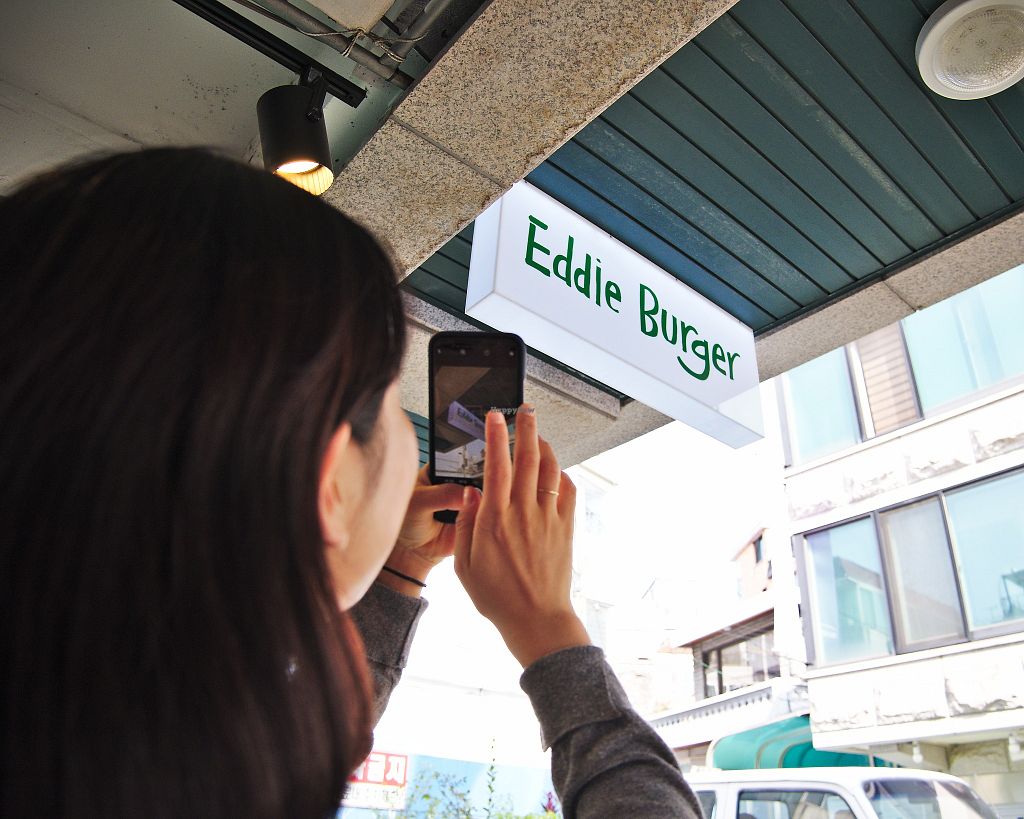 I used to visit the original location of Eddie Burger located in Jeonju, and now I make it a point to visit every time I go to Seoul. Located very close to the main street in Gangnam, Eddie Burger is tucked away down a small street featuring an open restaurant on the first floor and a large, covered patio.