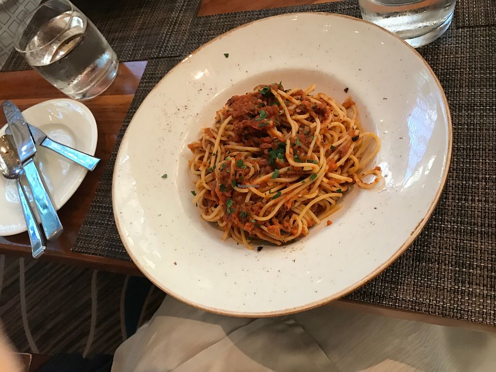 originally knew it was going to not be cheap due to it being in the four seasons of course, which was correct, but still was so good, portions were a bit small but it was all very fresh and still was filled. Also the baguette is vegan! so ask for it instead of the original bread given! bolognese was amazing!