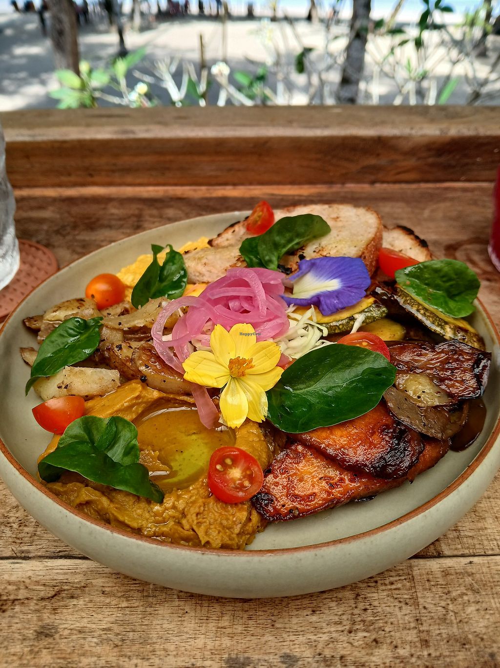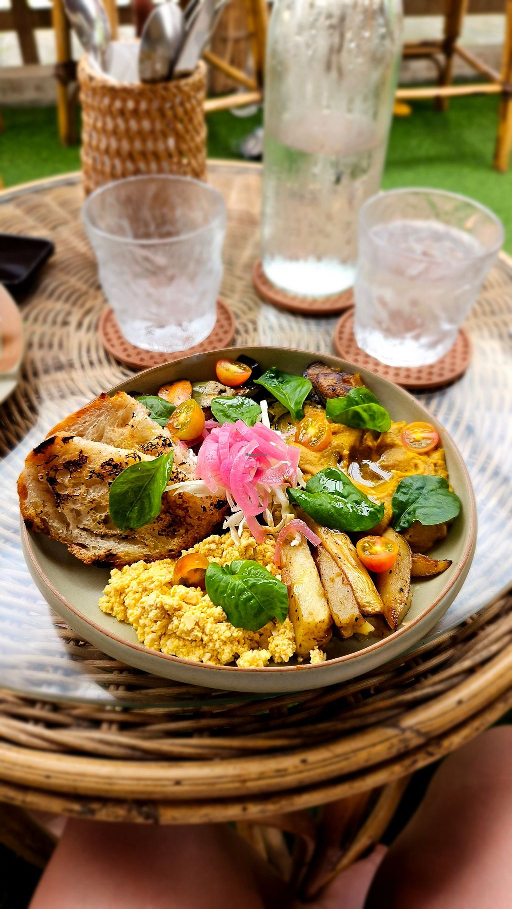 Lovely space overlooking the beach. Vegan options clearly labelled. I had the breakfast plate which was beautifully presented, delicious and filling. The juice of the day was also great.