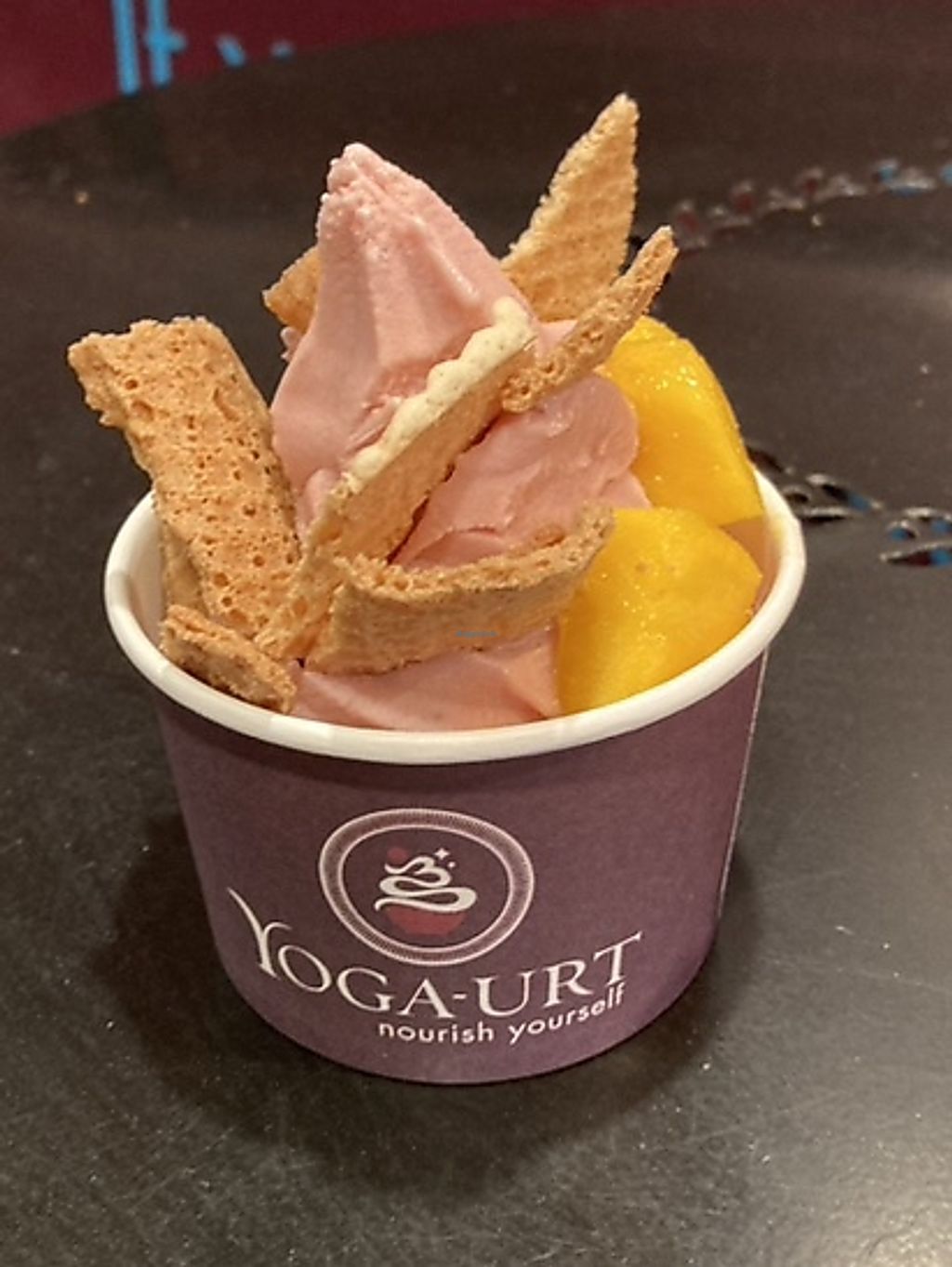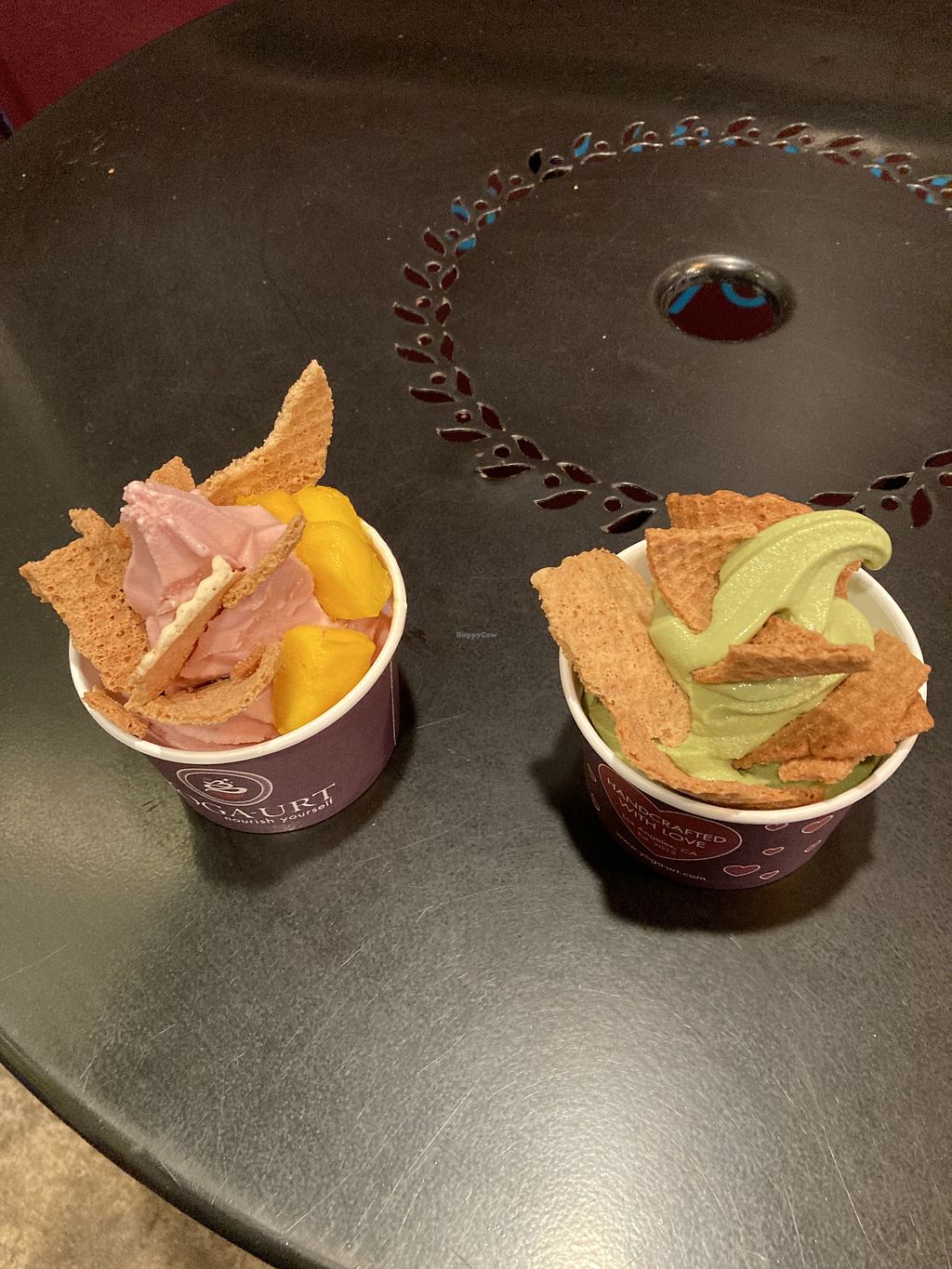 Strawberry, peach, pistachios w/ vegan cone✨delicious!
