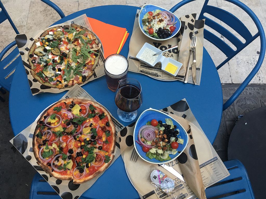 Honestly, this was the best restaurant experience I ever had. Happy cow doesn‘t allow me to rate them 5 stars (because they serve meat), but they would totally deserve it. It is a lovely place and also very affordable. We had the menu for 12,95€ which includes: a pizza, a salad, 2 pizza dough sticks and a drink. You can choose the ingredients for your pizza by yourself, and the best part is: you can choose as many ingredients as you want. There are a lot of vegan options. Vegan mozzarella, vegan cheddar, vegan tuna, vegan mortadella and vegan meat. And of course a lot of vegetables. It‘s actually extremely cheap for what you get AND it tastes good as well. The stuff is also very friendly, they can speak english and made the salad vegan for me. They also have vegan brownies (one for 1,50€). If you‘re in Valencia, go there!!