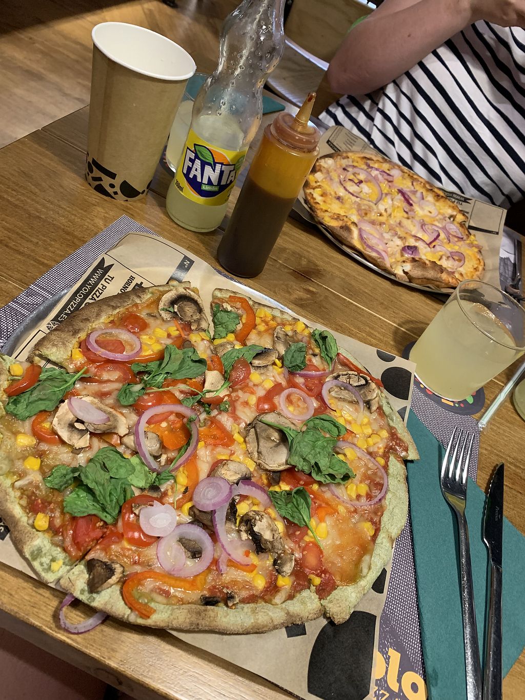 We went there on a school trip and had some vegetable pizzas with vegan cheese. Wasn’t really nice, pizza wasn’t really crunchy and the vegan cheese was not tasty at all. The glasses were smelling really weird. Those who had a flavored drink like Fanta didn’t noticed, but if you had water you couldn’t drink it, tasted really disgusting.