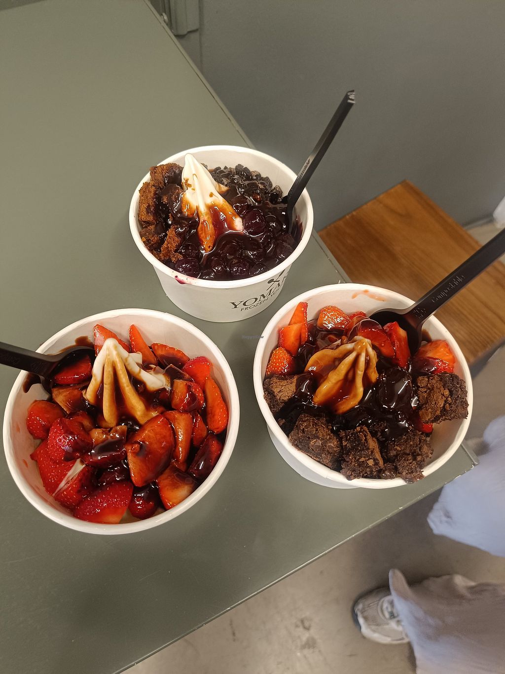 Frozen Yohurt with Strawberries, Oreos, Banana bread and chocolate sau…
