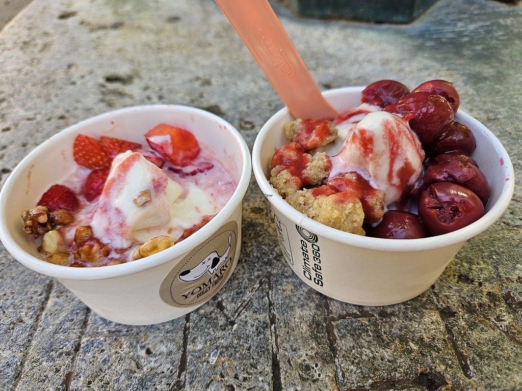 Size M frozen coconut yoghurt with streusel, banana bread, raspberries…