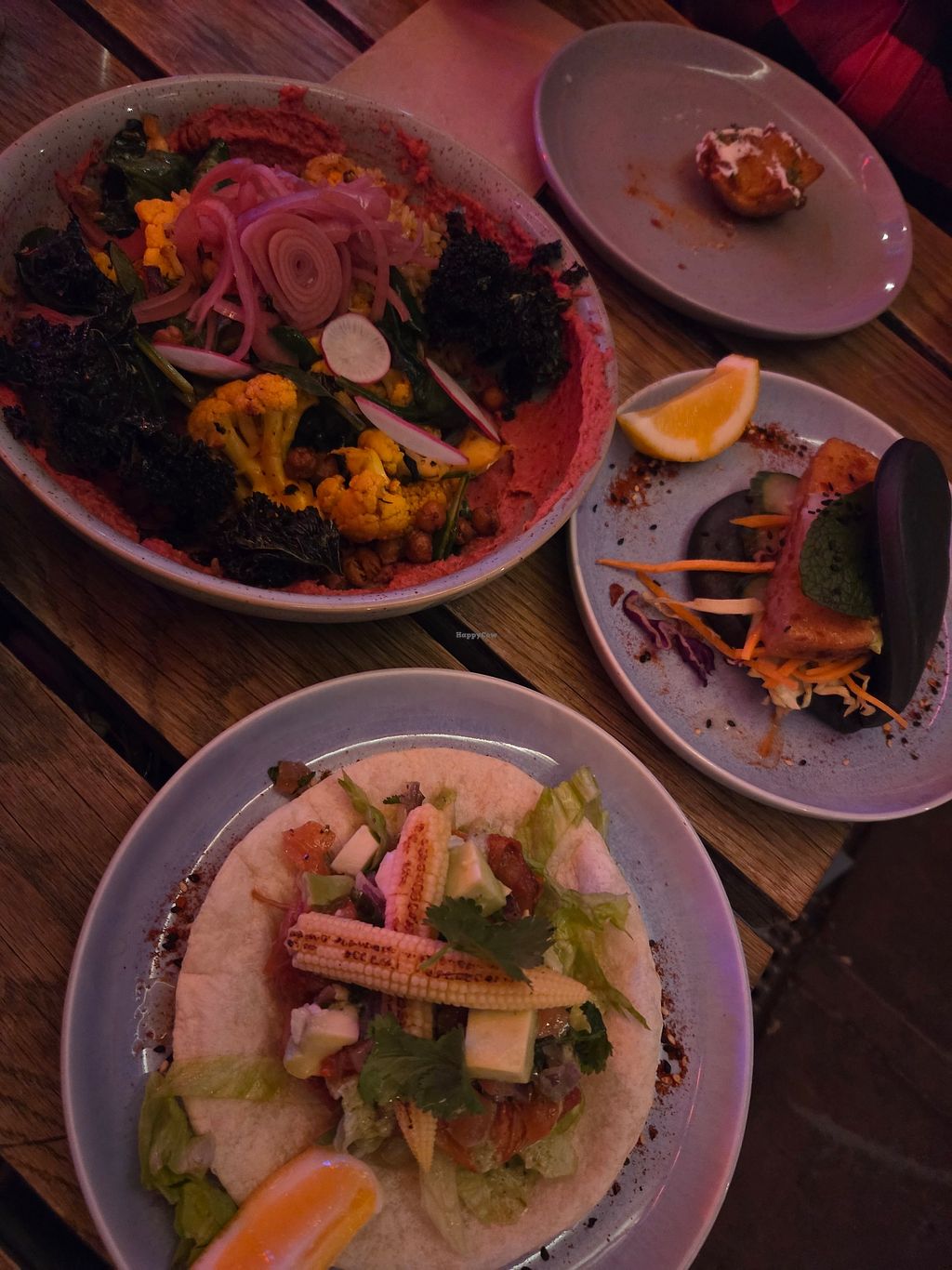 Cauliflower buddha bowl, chickn taco & tofu bahn mi