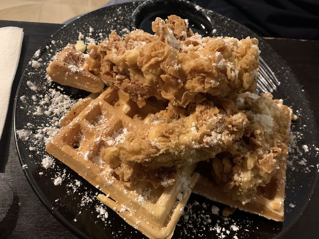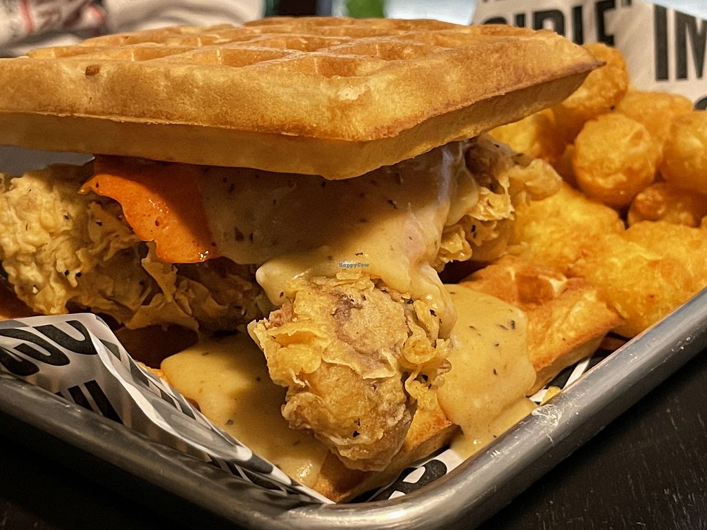 First time visiting Chattanooga and I stumbled upon this place. SO YUMMY! I dined in for brunch on a Saturday and the place had such fall, cozy and spooky vibes, so much fun! I got the pumpkin waffle plate which came with spinach, tofu and potatoes and my boyfriend got the chicken and waffles. The waffles were a little dry for my liking but everything was delicious and service was super friendly! Absolutely recommend.