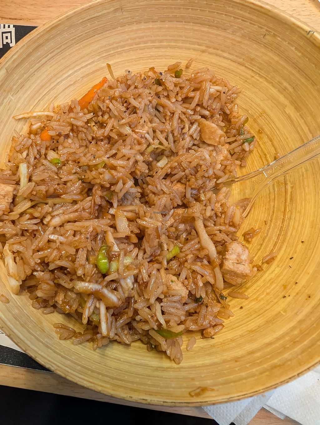 Unfortunately, I didn't have time to go to the restaurant due to work, so I sent a colleague to pick up some food from You Wok. It was a bit challenging to communicate that I wanted a vegan meal, and the food could use a bit more seasoning.