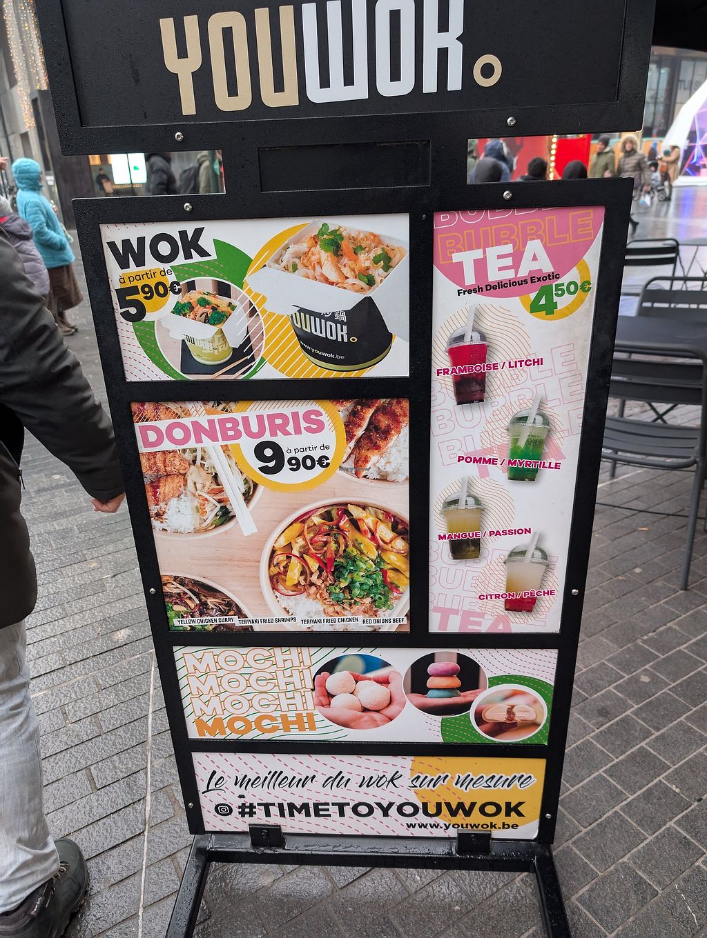 Serves meat, vegan options available. Offers wok with different bases. You can build own using veggies or tofu as main protein, plus many other ingredients. Has several locations in Brussels. Open Mon-Sun 11:00-23:00.