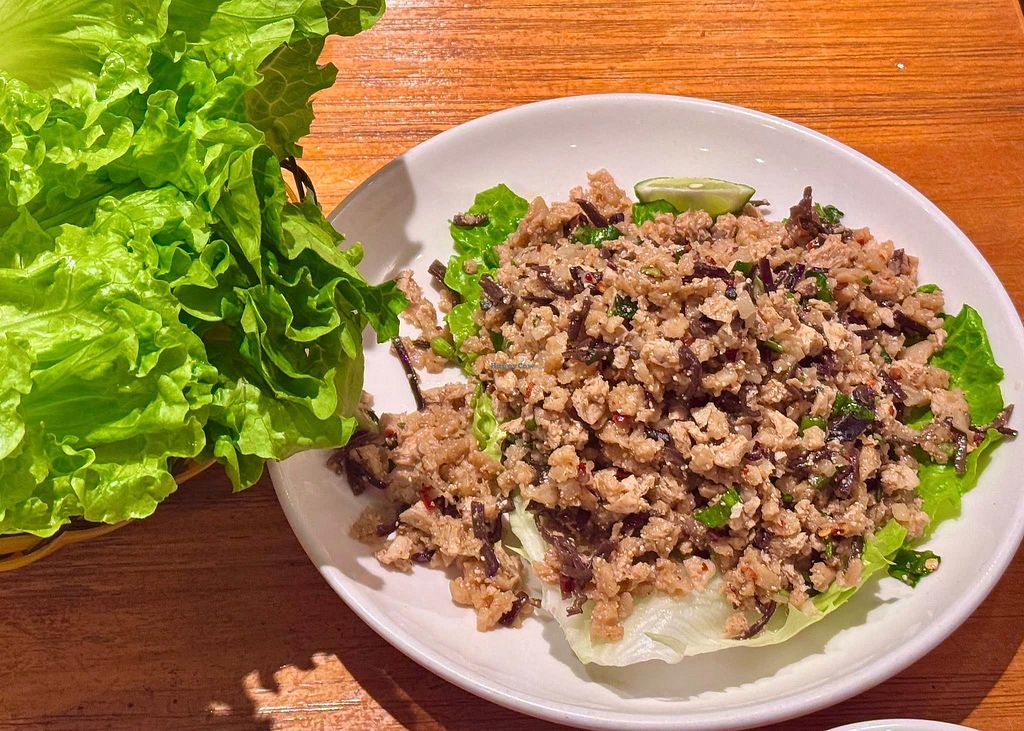 Minced Veggie Pork in Lettuce wrap with Basil & Coriander 金不換素肉碎生菜包 (P…