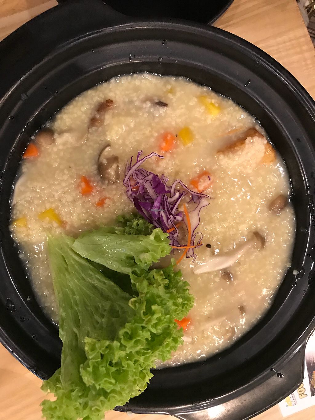 Millet porridge. In the bowl: beancurd sheets, lettuce, a variety of m…