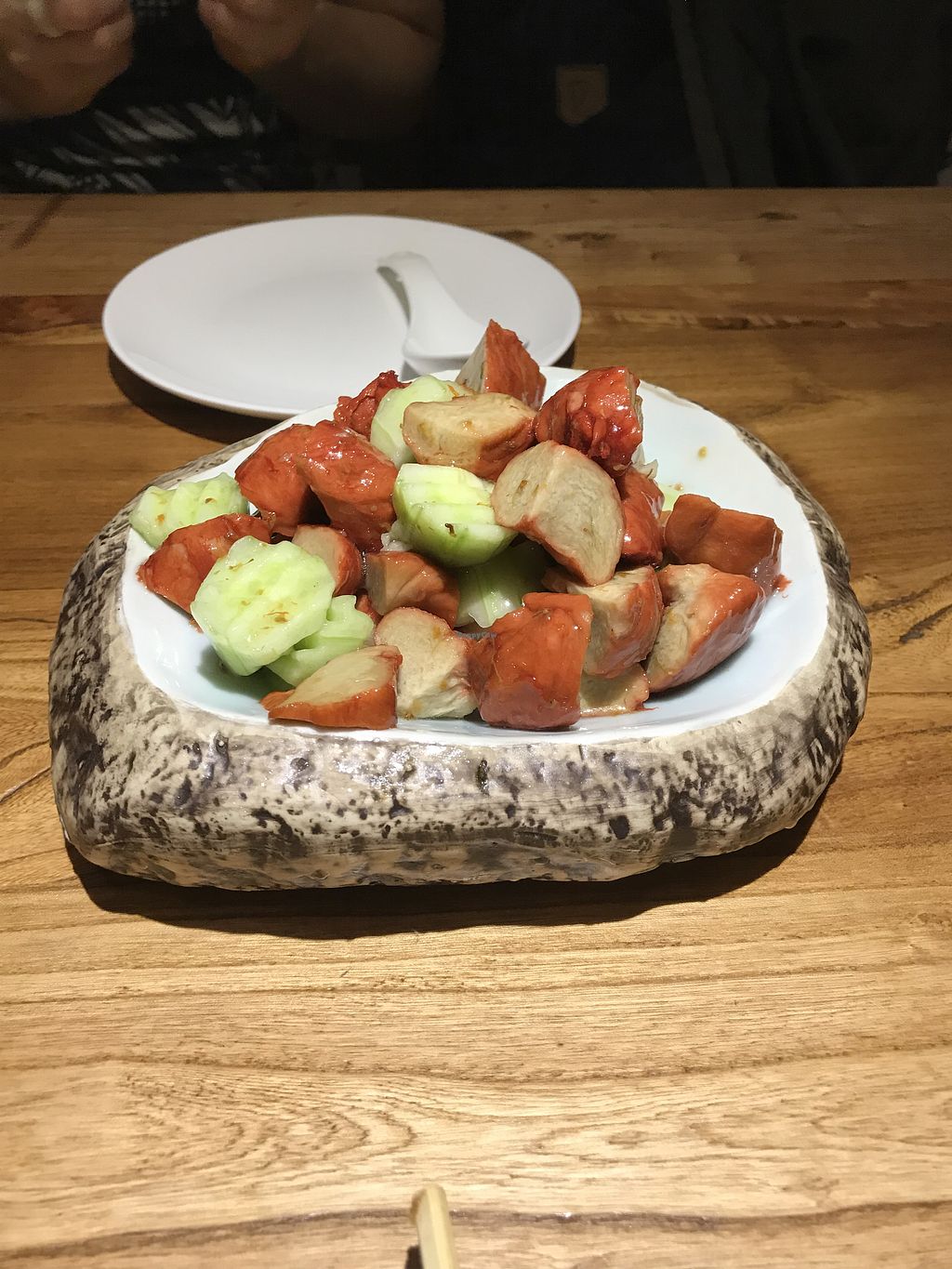 When we arrived we were so happy to have found it so easily as often it is not so easy here in China. They didn’t open for another hour but offered to let us sit and have tea until opening time. The food was fantastic, the menu has photos and English descriptions. There were a lot of Mock Meat choices. The sweet and sour “pork”, served cold, was amazing. The service was kind and understanding and with the help of translator apps we were able to communicate quite well. I highly recommend this restaurant to anyone in Tianjin!!
