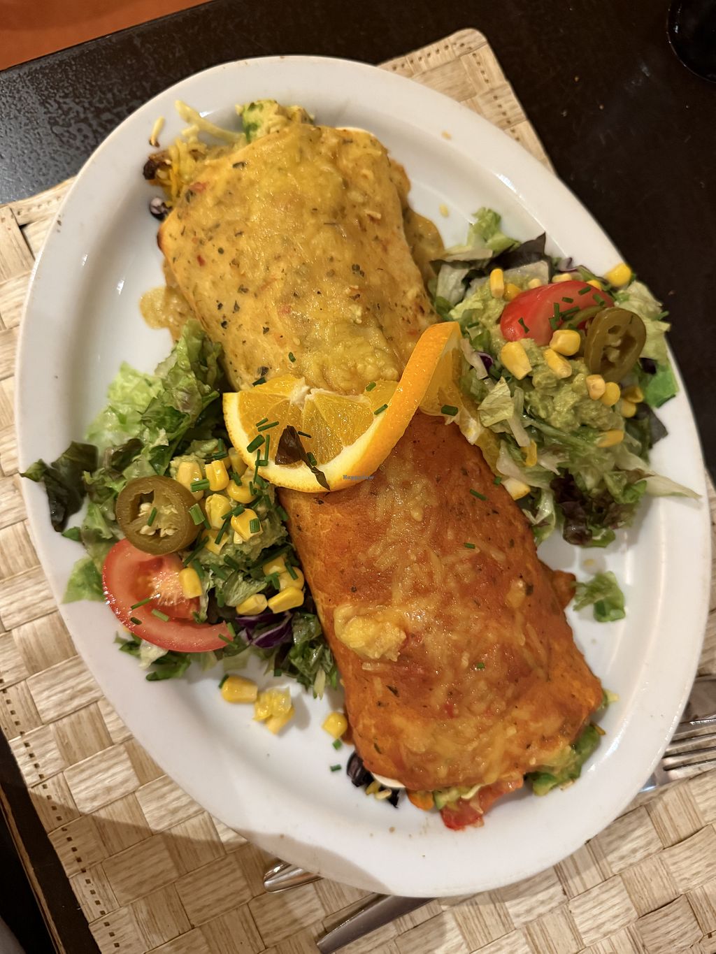 Enchenada's met salade en gegrilde mais