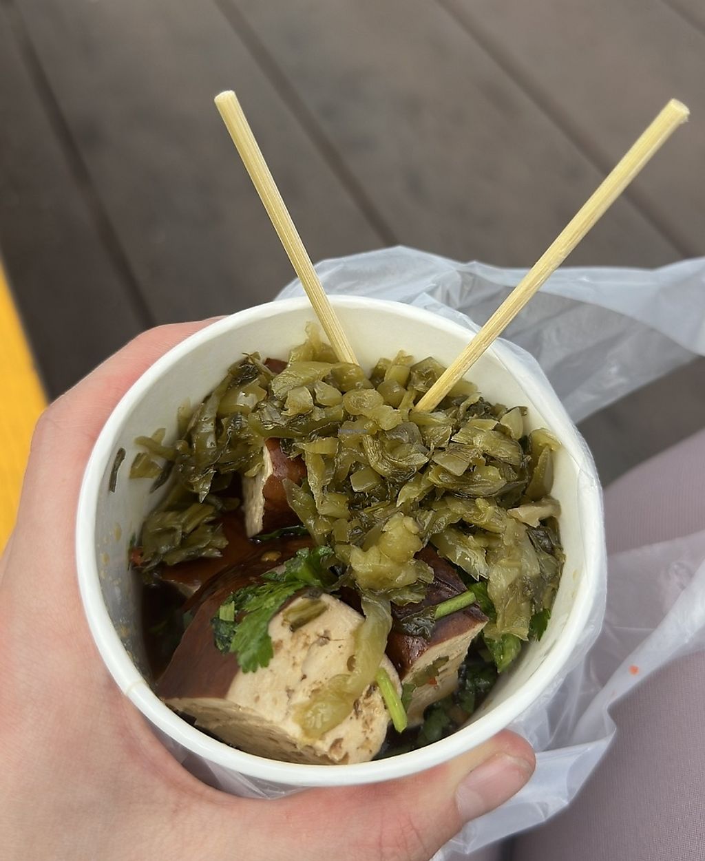 Stall selling marinated tofu stuffed with fillings like pickled vegetables and kimchi. All vegan and gluten-free. Hours may vary. Open Mon-Sun 9:00am-7:00pm.