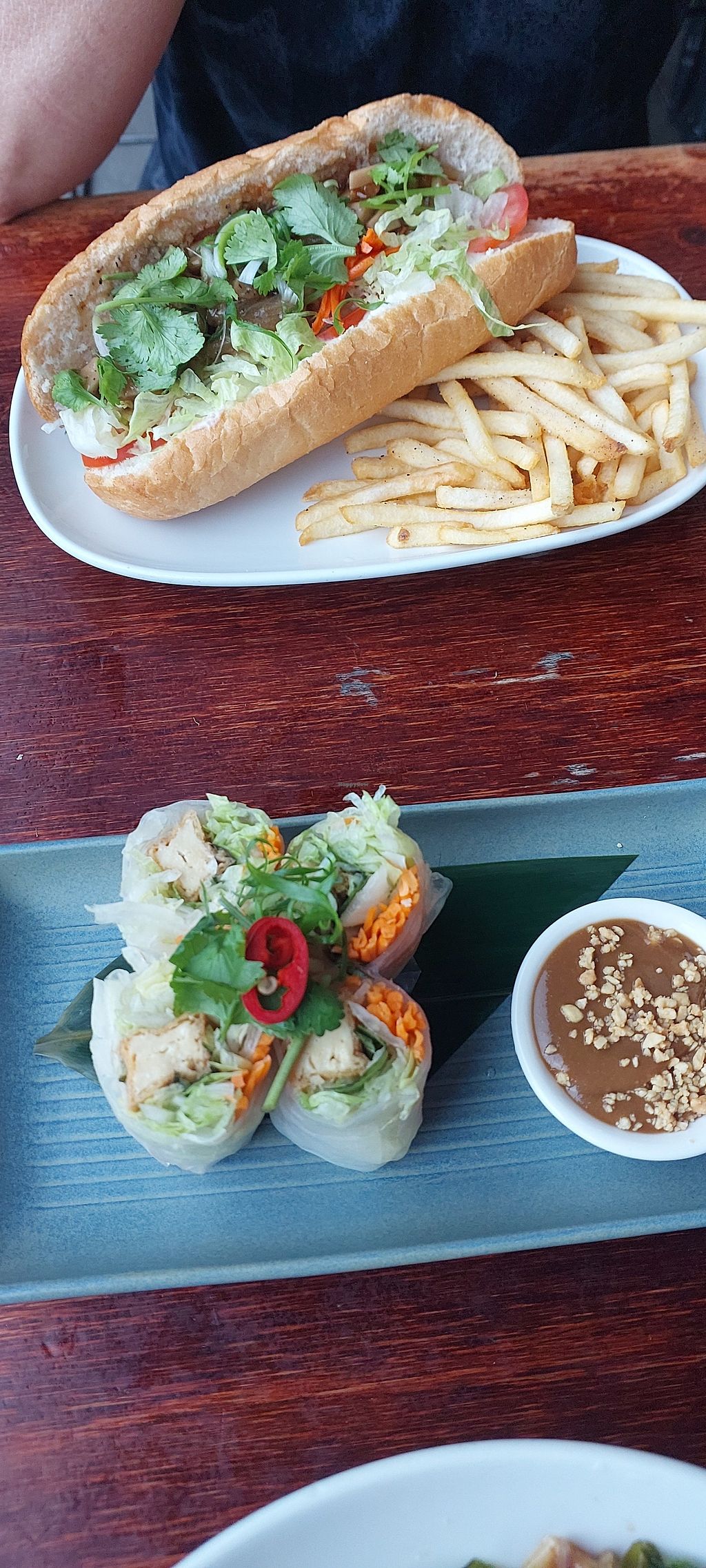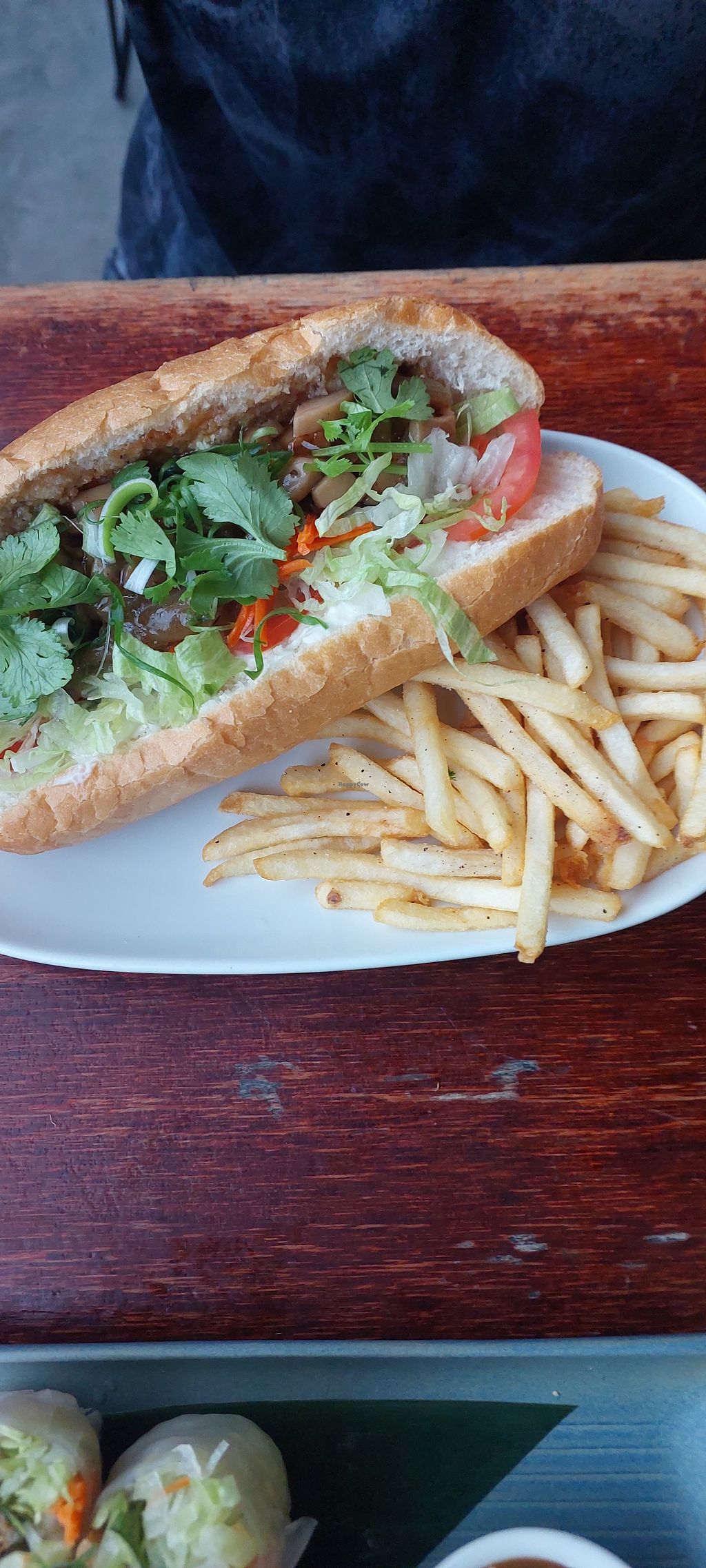 Read moreWe had summer rolls, pad see ew and king oyster mushroom bahn mi with chips.