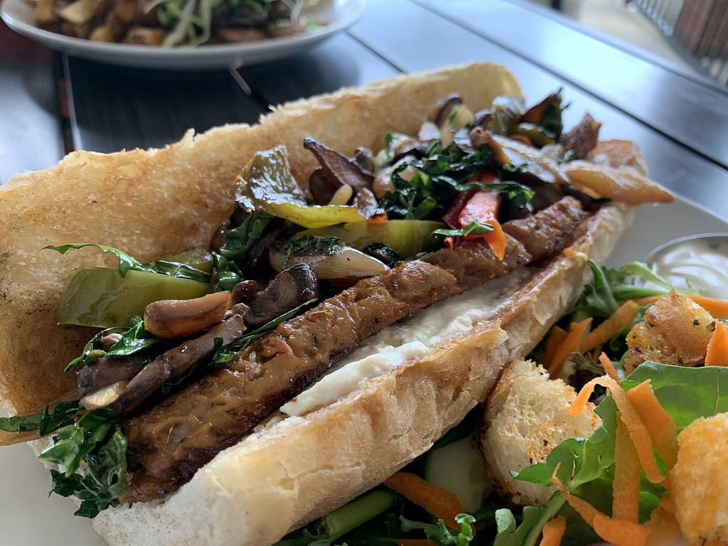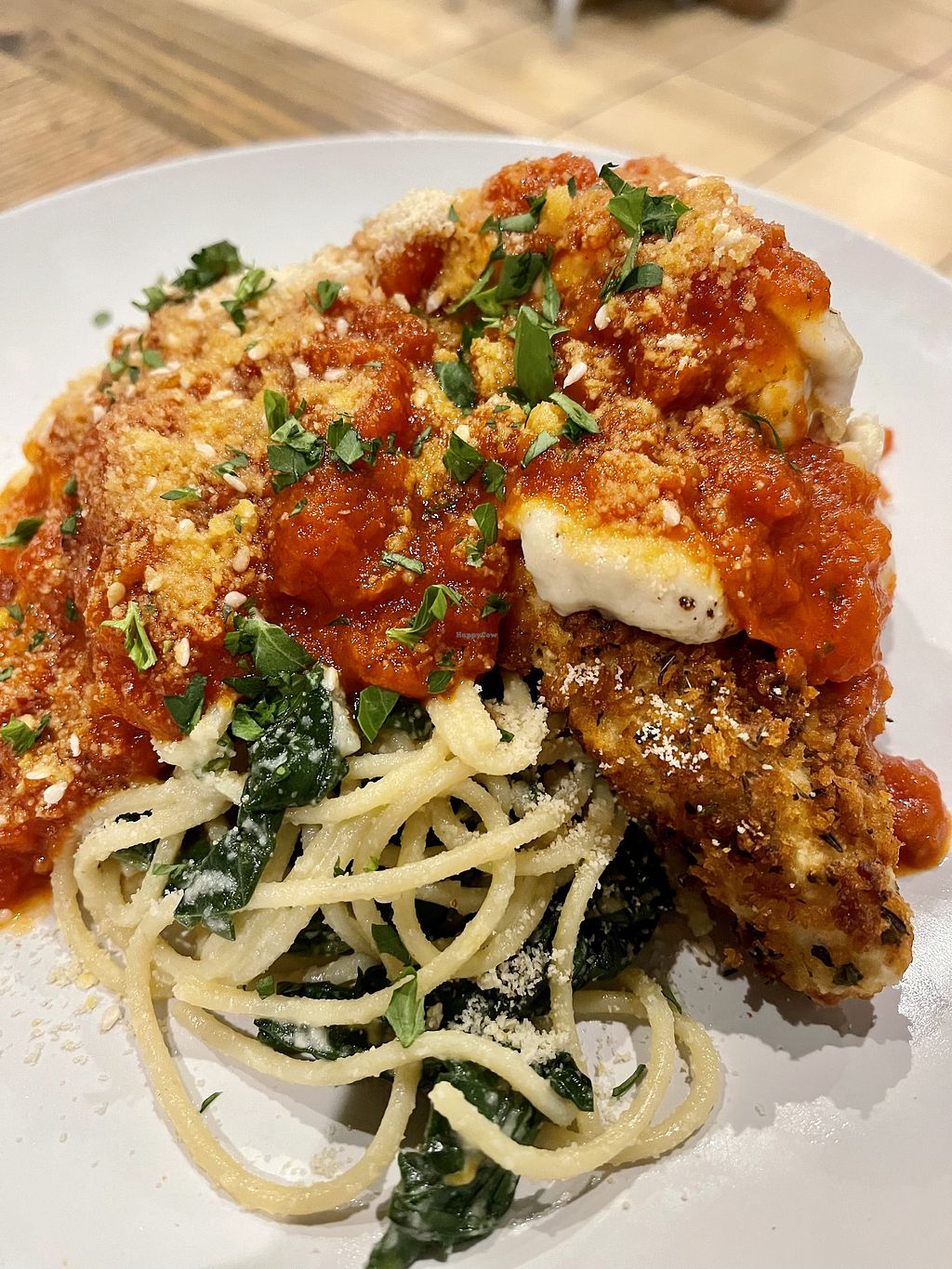 Chick’n parm (the “chicken” is tofu and not mock meat)