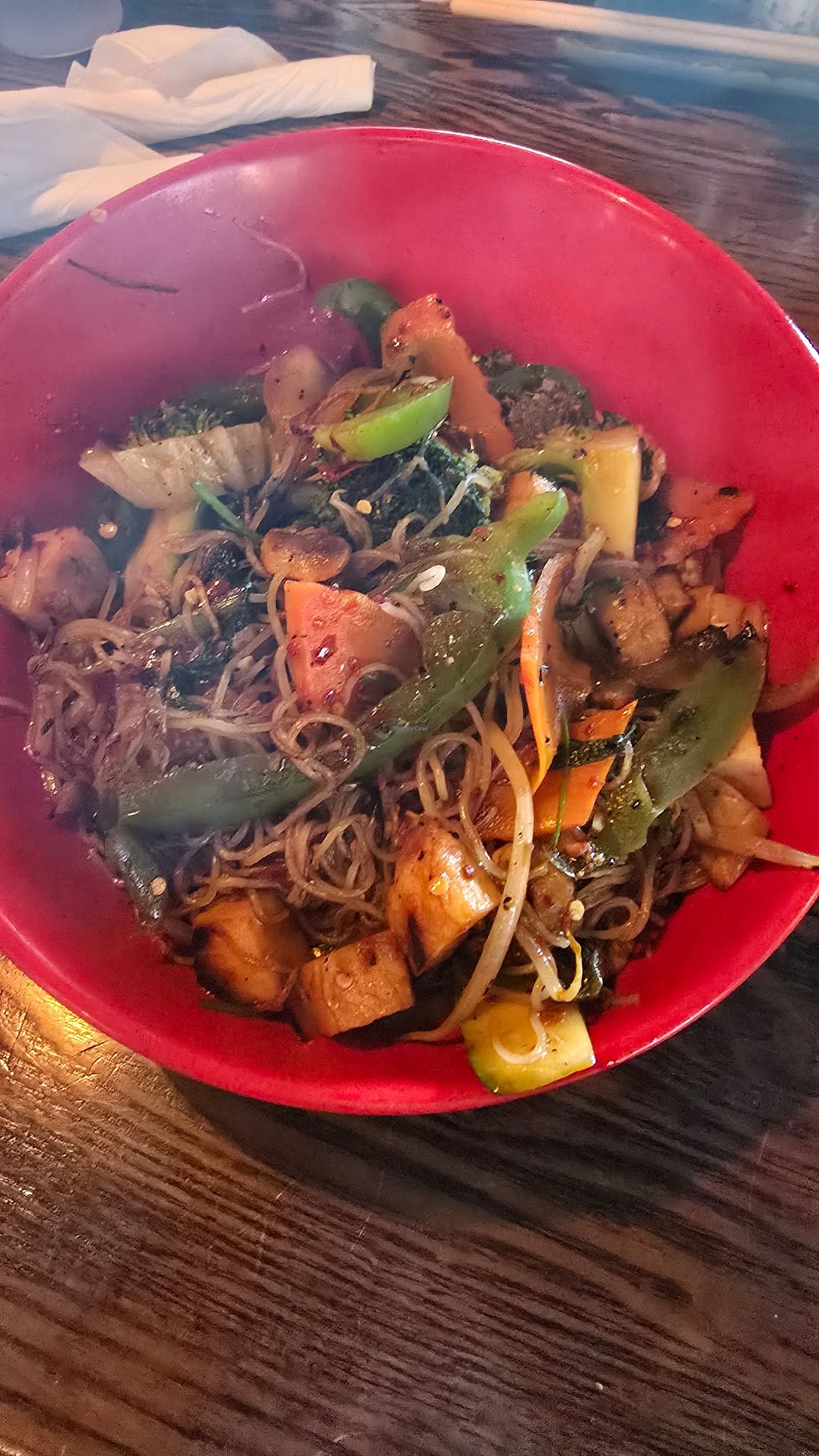Read moreThe stir fry has lots of great vegetables and you can stack your bowl pretty high. They give you a bowl when you order and a piece of paper that lets you order a optional base of white rice, brown rice, or fried rice.