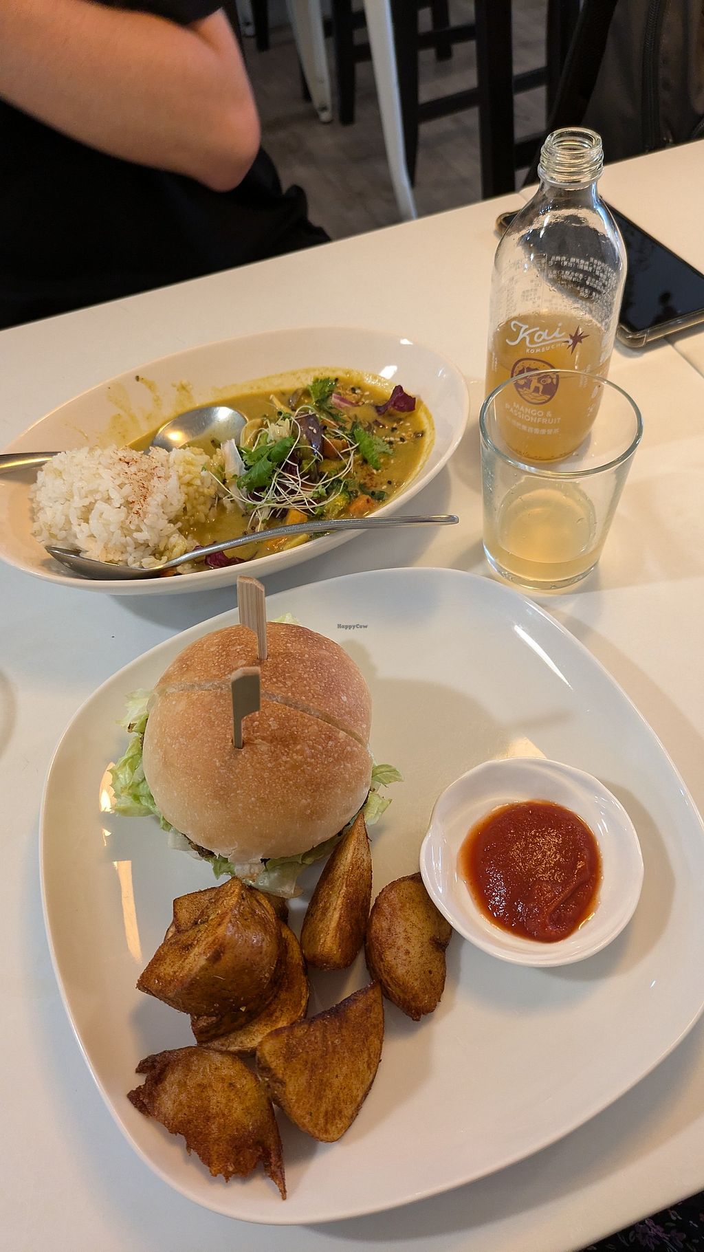 I love animals burger, kombucha and curry