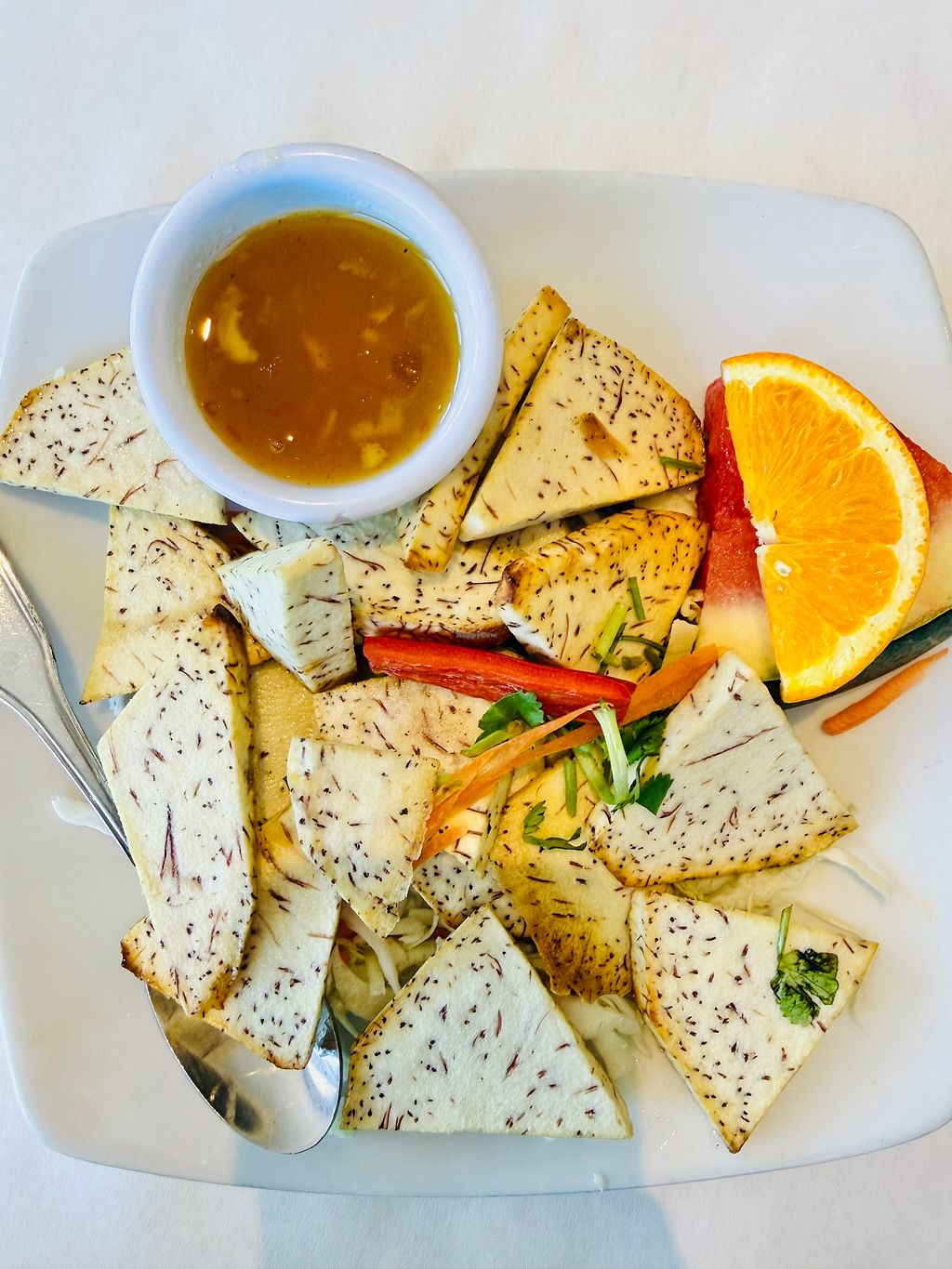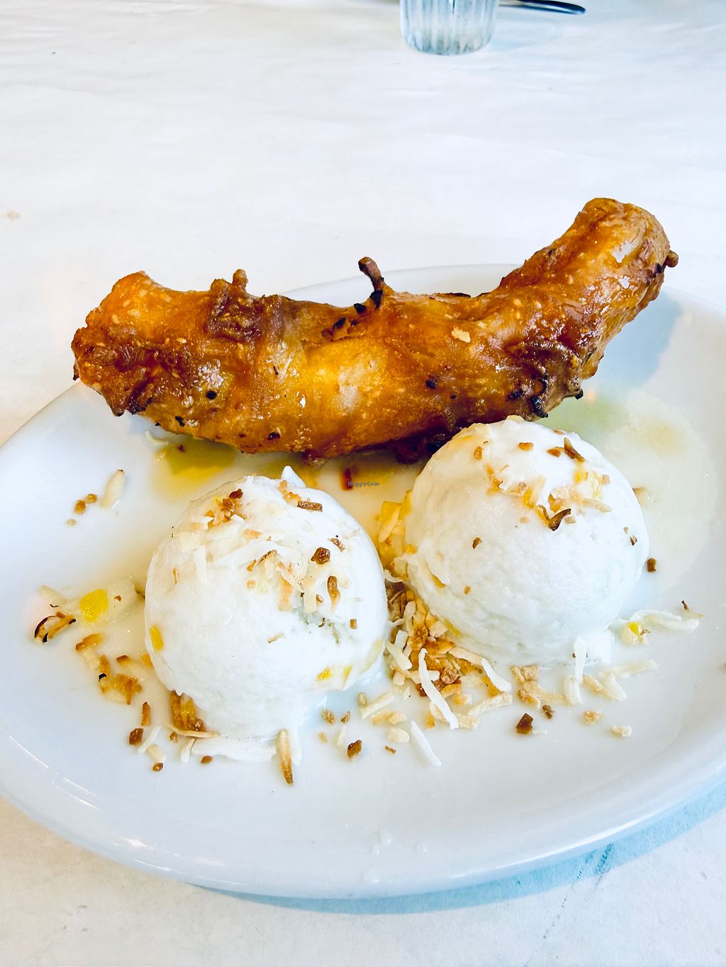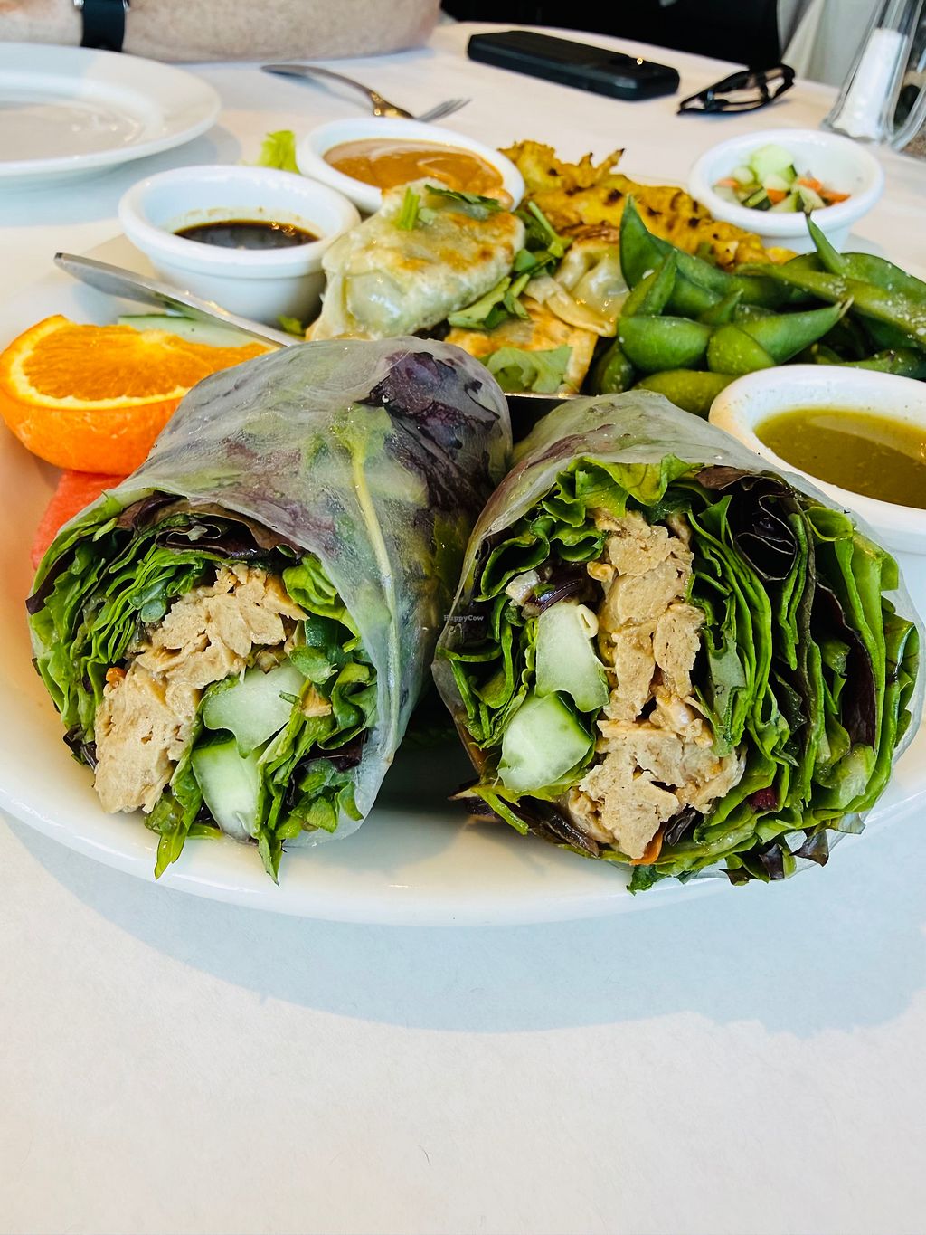 Vegan duck and veggie glass noodles dish with a vegan Thai iced tea!