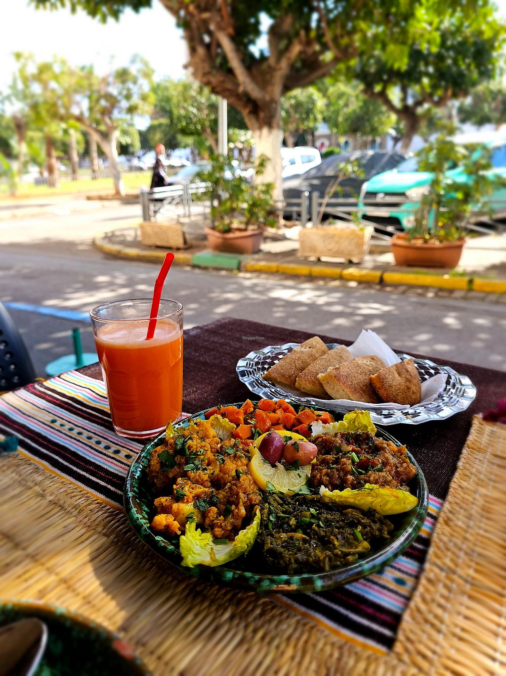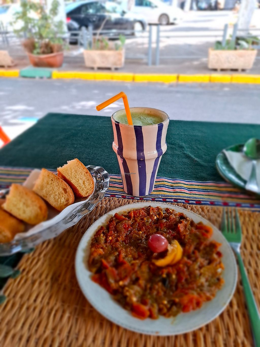 Pros: Location with outdoor sitting, Live traditional music, Vegetable juices
