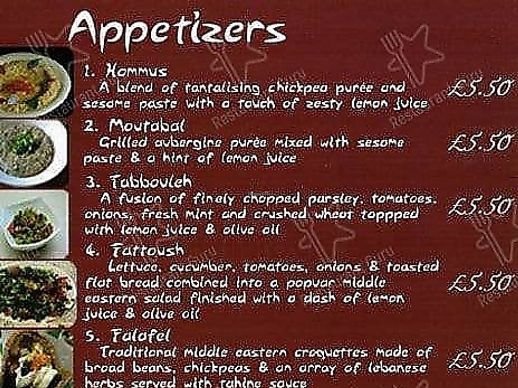 Serves meat, vegan options available. Lebanese restaurant offering a few vegan items such as hummus, tabbouleh, fattoush, falafel, loubieh, moussaka and mujadara. Open Mon-Thu 18:00-20:00, Fri-Sat 18:00-21:00.