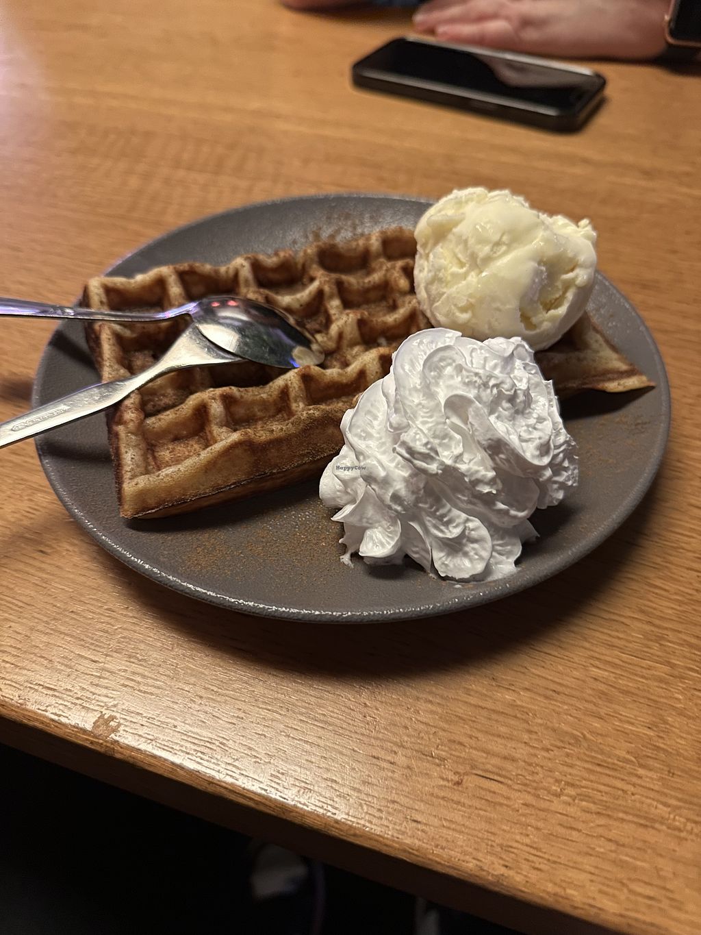 Waffel mit Vanilleeis und Sahne