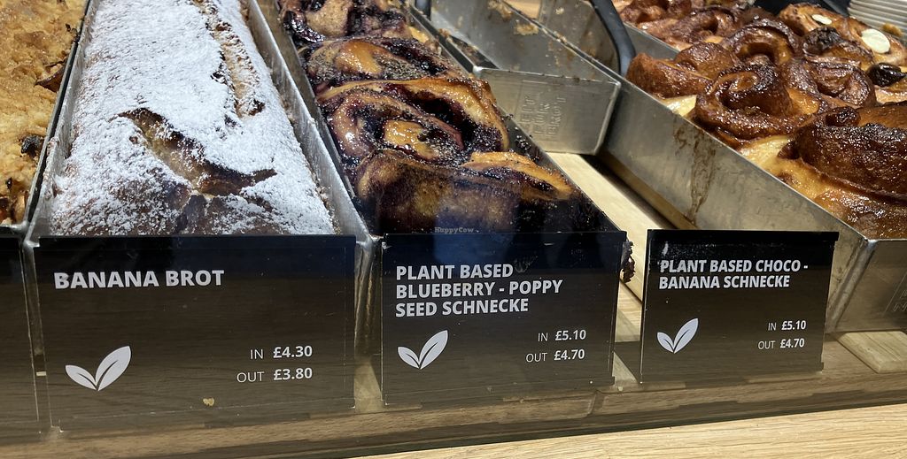 What a pleasant surprise to find an authentic German bakery on my trip to London, and one with many labelled vegan options! I didn't see much in the way of German cakes, but their vegan Schnecken were delicious. While the Brötchen didn't hit quite like the ones from a village Bäckerei in Germany, they were decent enough. A busy spot, not super cozy.