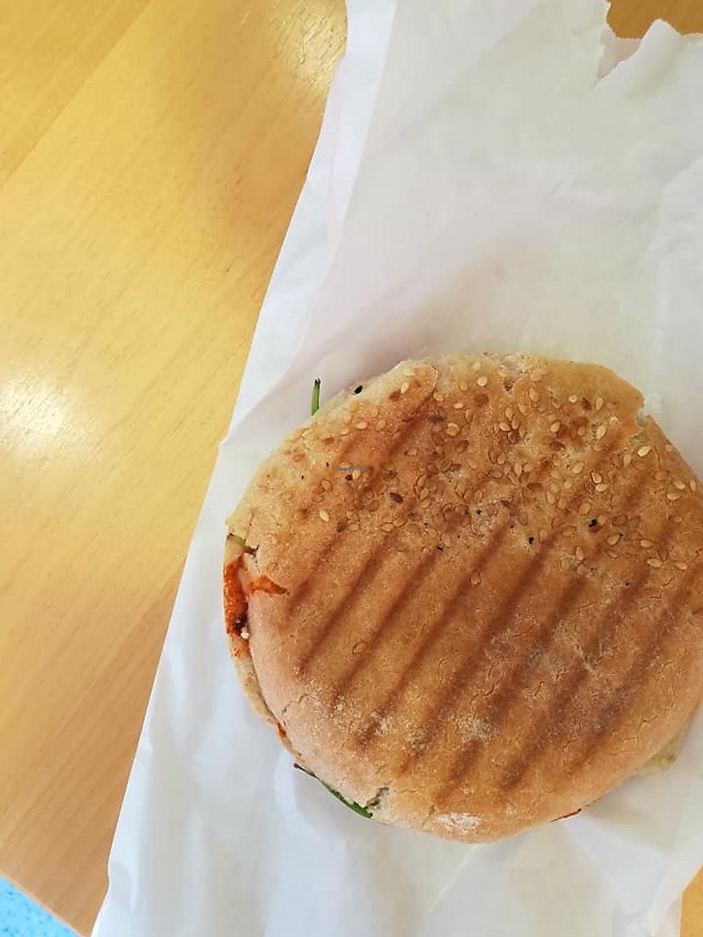 Serves meat, vegan options available. Cafe serving vegan paninis, baked goods, soups and breakfast dishes. Open Mon-Sun 10:00-19:30.