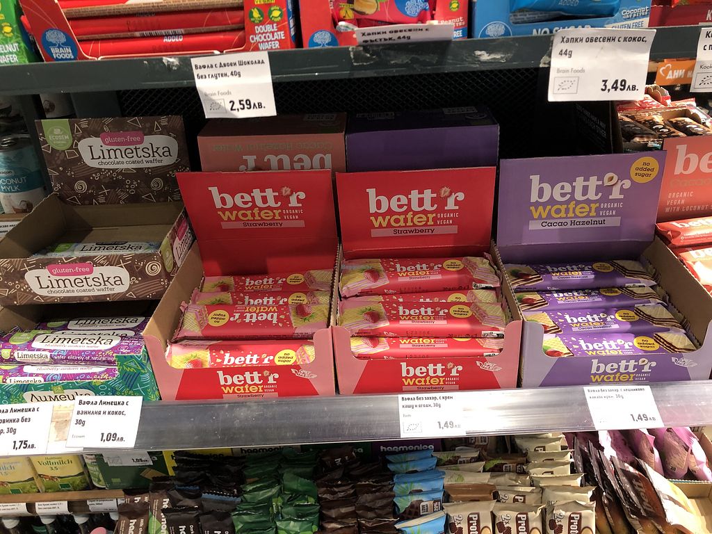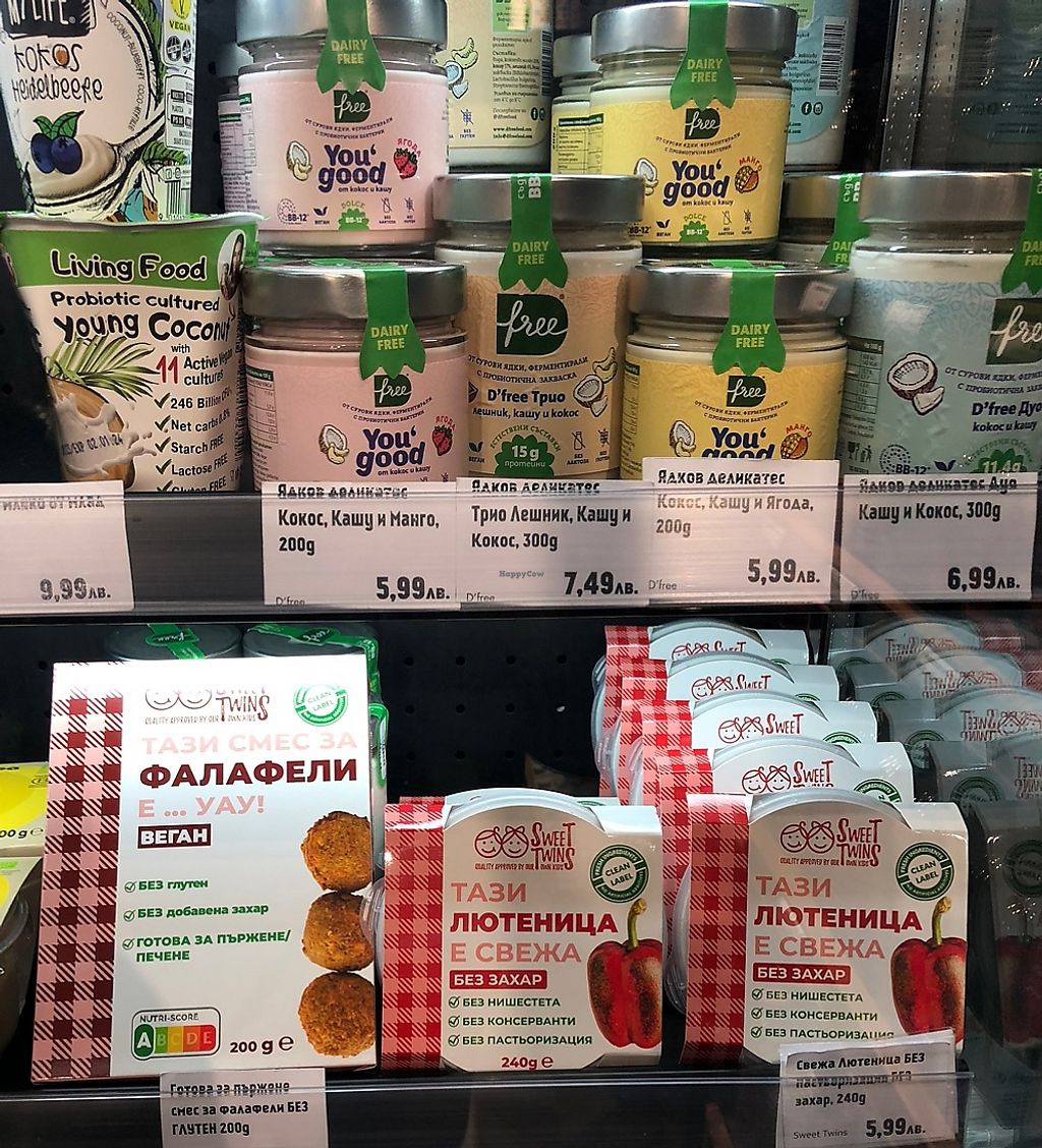 Has a better selection of vegan products than I’ve found in any of Sofia’s supermarkets. A large selection of nuts/seeds, vegan cheeses, and many cooking products like nutritional yeast and date powder.