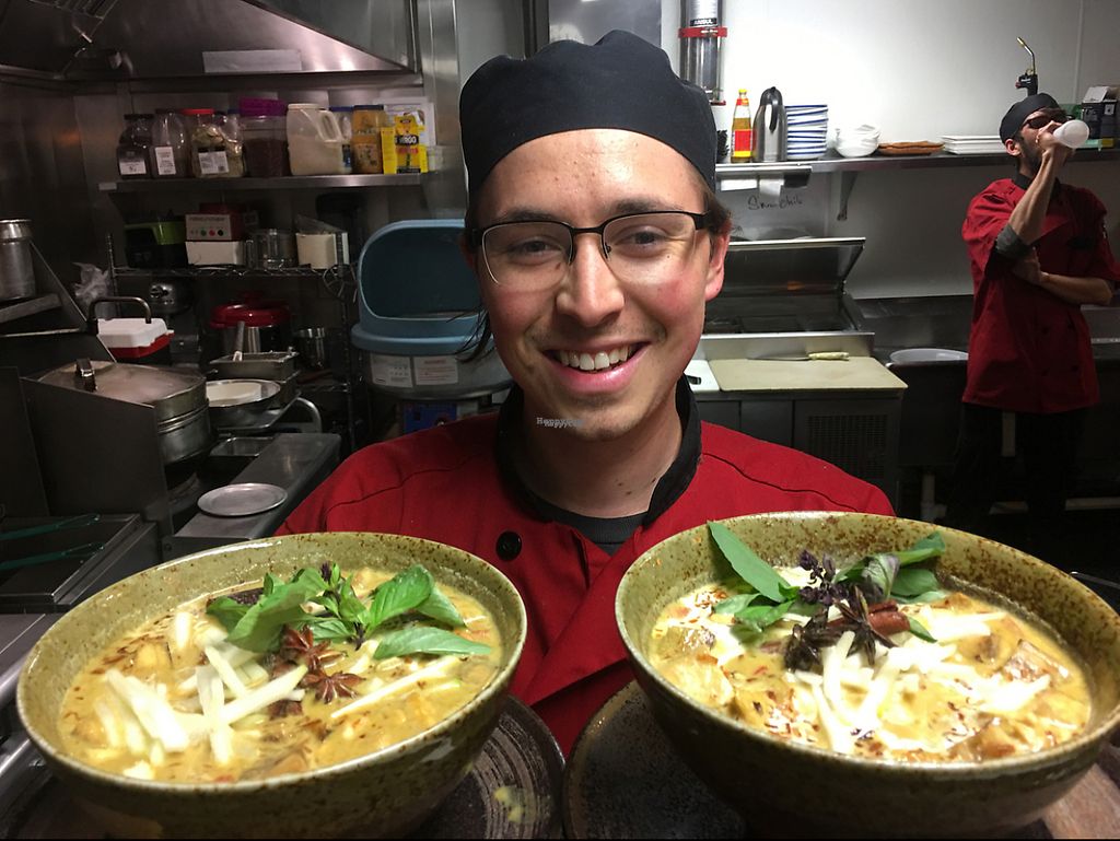 Yellow coconut curry , eggplant , tofu, kashews, apples, potato, peppe…
