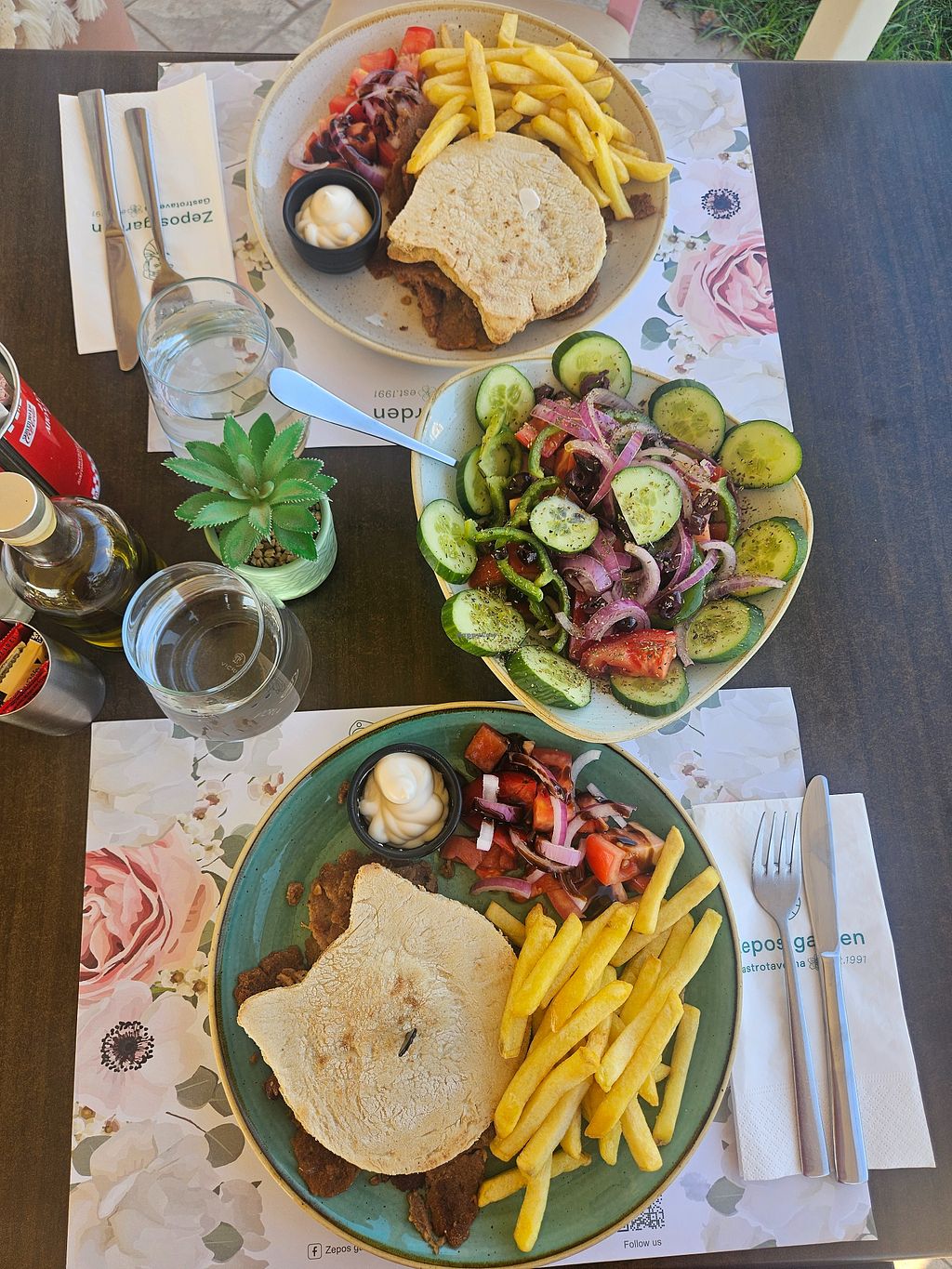 We had great Vegan Gyros at this place. They also had several other vegan options like a vegan burger that I tried on a different day. The place is very calm and large and close to the Kalamaki beach. The vibe is lovely and it's so nice to sit outside with all the cats that are walking around.