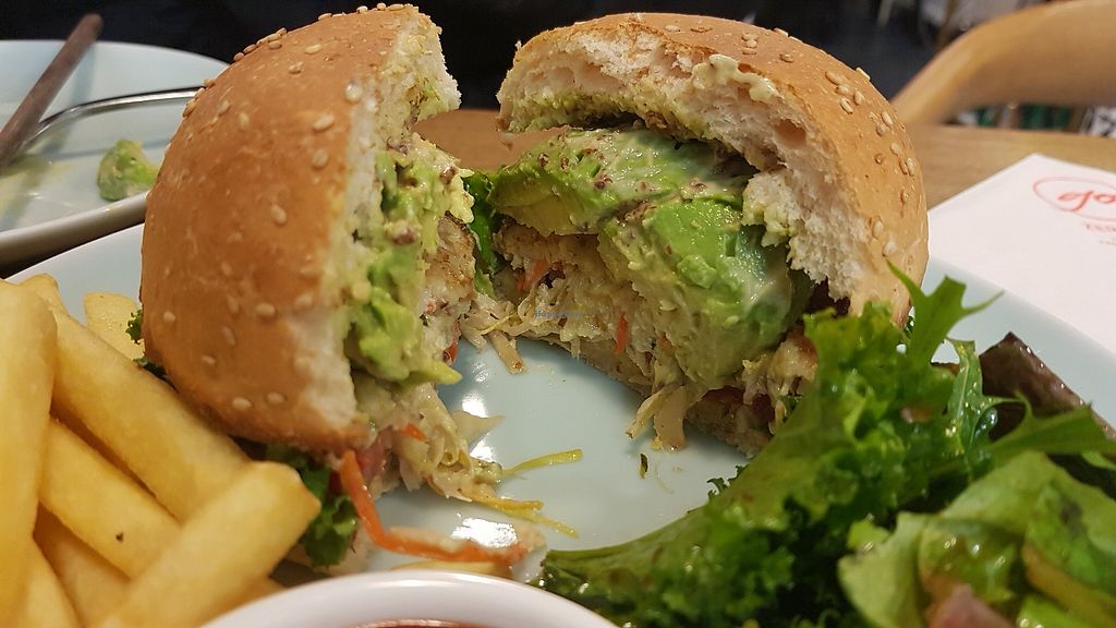 Upon entry, I was pleasantly greeted and immediately seated. The cafe was warm and welcoming and the staff was pleasant and helpful. I asked what the recommendation was for a burger and was told to try the tofu avocado burger...