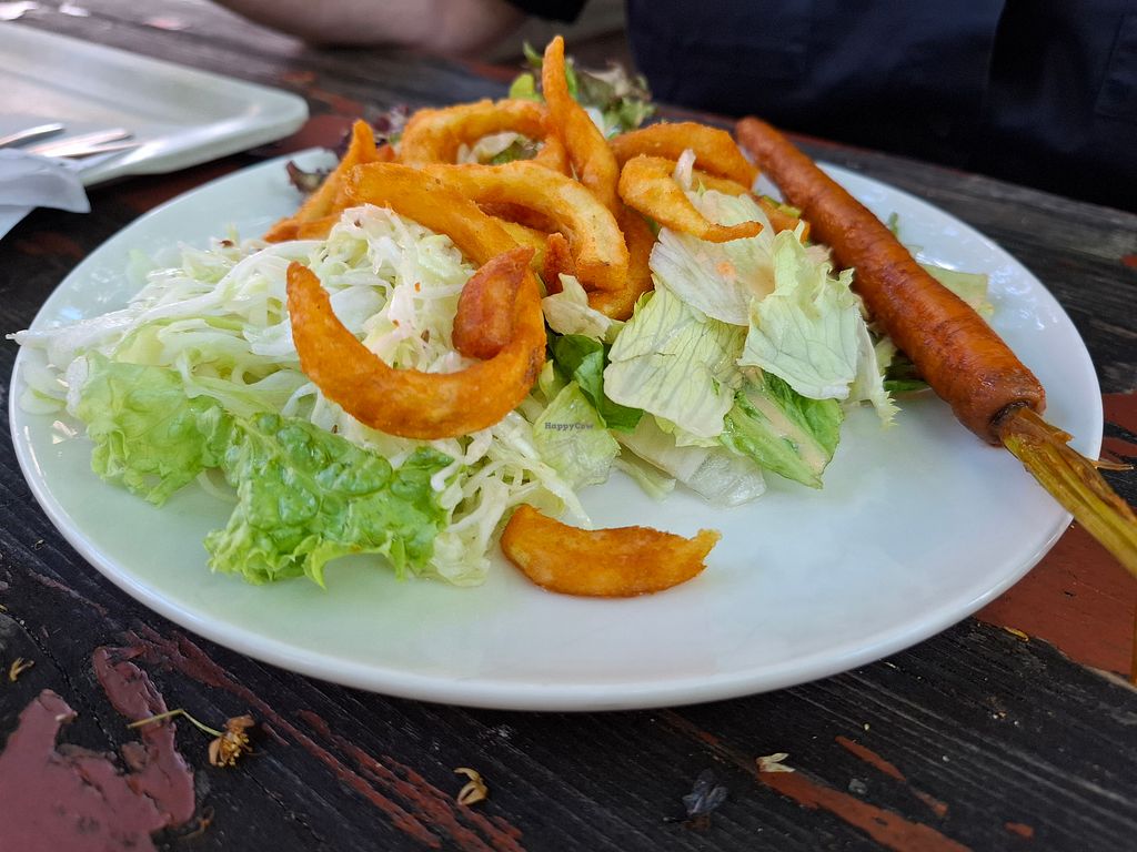 Pros: Loads of vegan options, nice outdoor seating,