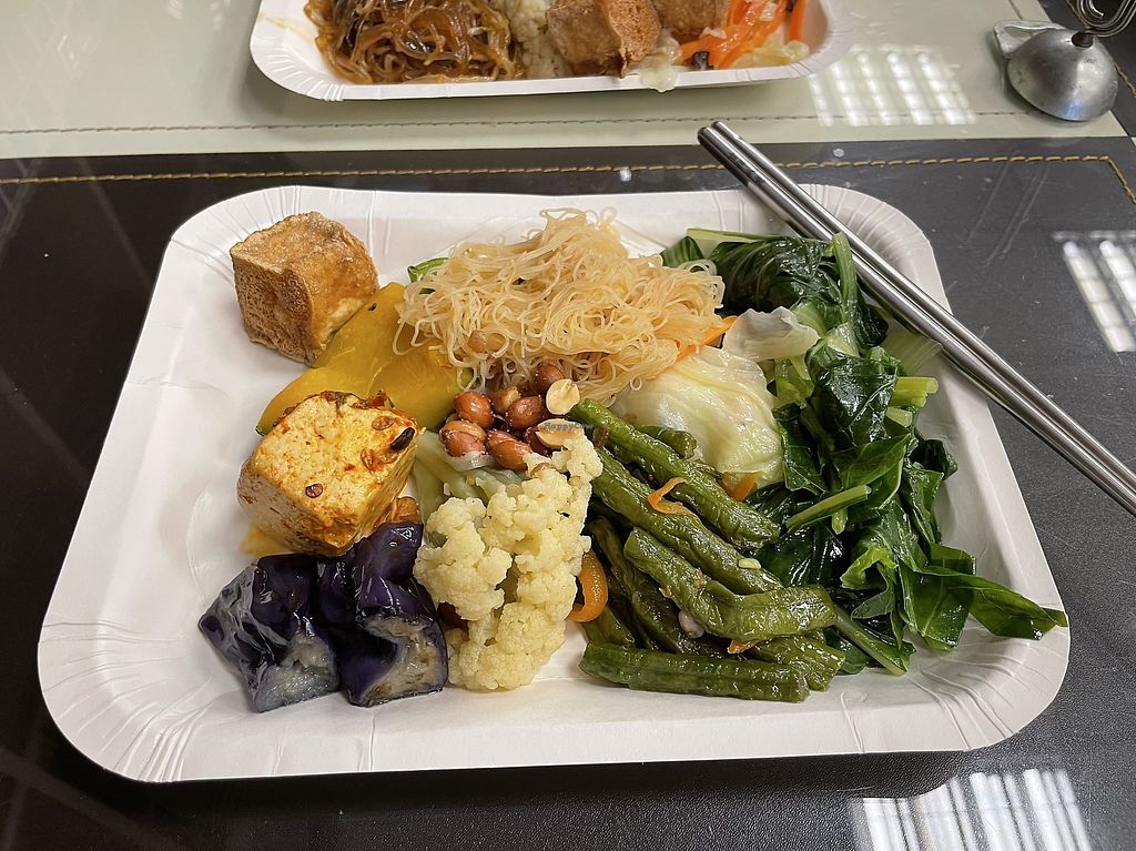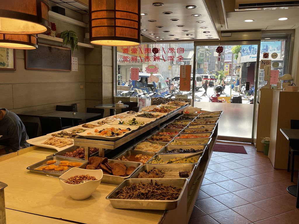 This is one of my two favourite pay-by-weight vegetarian buffets. The food is very good. I (a 100 kg guy) usually pay 150-200 NT for a meal plus rice, which is a bit more than I pay at most other buffet places; I'm not sure whether they price per weight is a little higher here or whether I just take more food because it's so good.