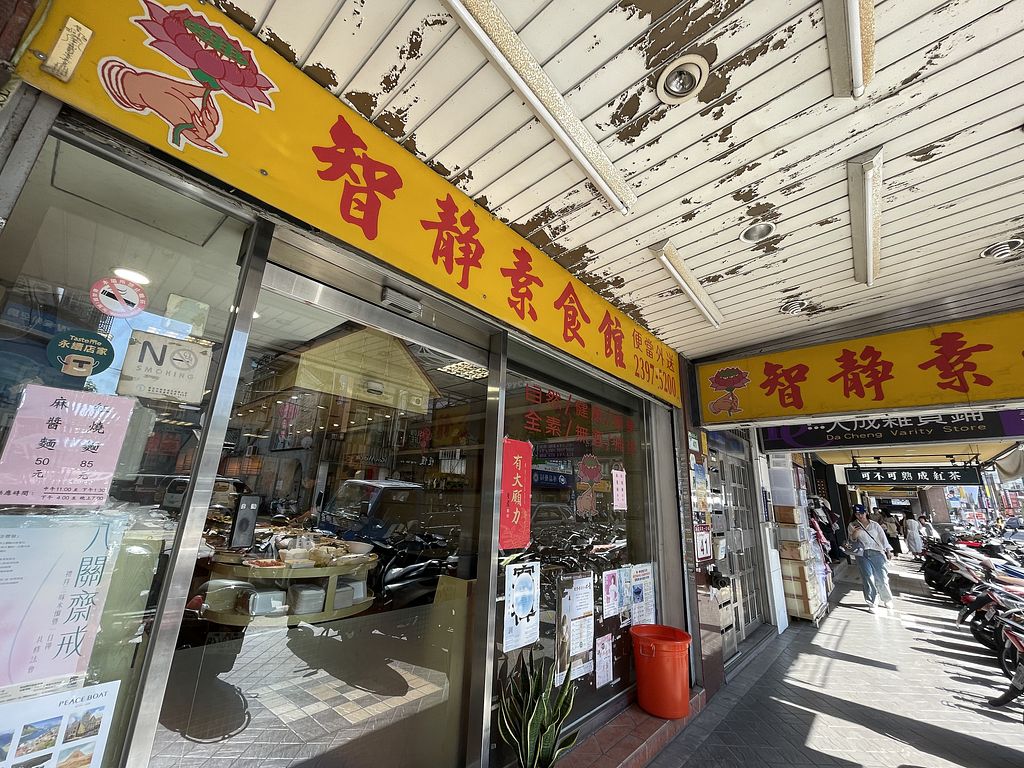智静素食館 is a larger-than-average vegetarian buffet restaurant. Plenty of seating.