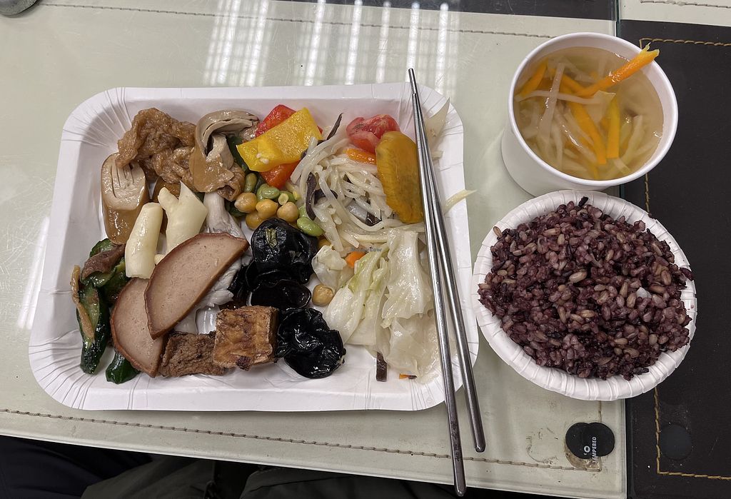 I took my mom here for lunch before she went shopping at Nanmen Market, and while she's not vegetarian or vegan, she enjoyed the variety of nutritious vegetables offered here. (I did, too!) They also have a mung bean and Job's tears soup, which I thought would be slightly sweet but didn't taste sweet at all. We did not opt to get any rice (NT$15 for your choice of white, brown, or red) but were full anyway. There was also a savory soup that we didn't try. You can also order sesame noodles (NT$50) or braised noodles (NT$85). I saw someone's order of the latter, and it looked huge. So you probably would fill up on that already instead of eating anything off the buffet!