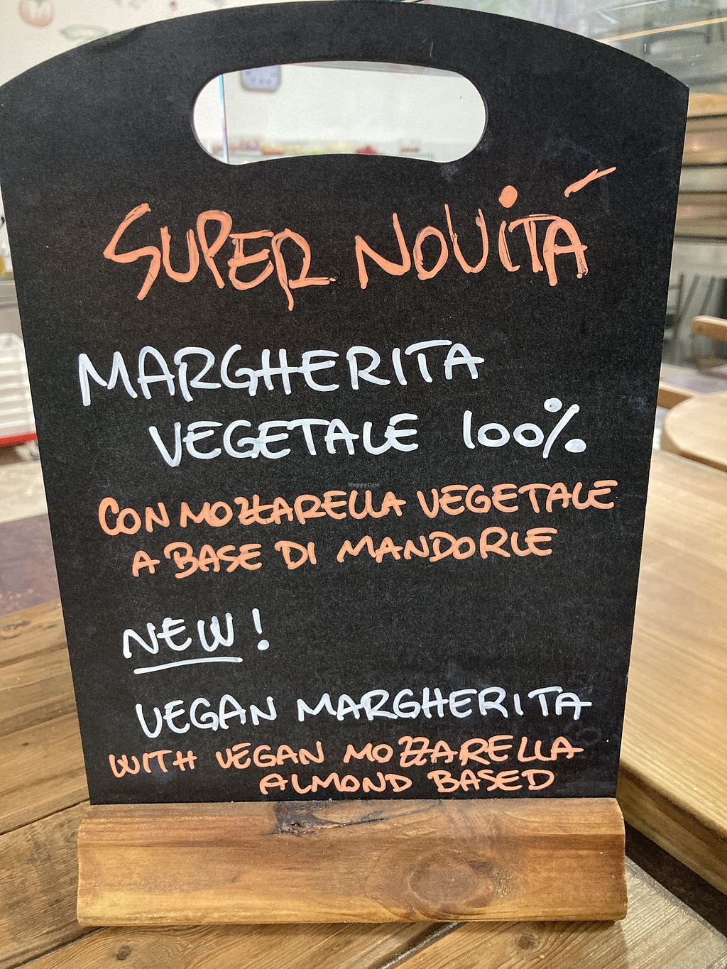 3 vegan options, clearly labelled. ‘La Vegana’ with tomato sauce was very plain, but the ‘Botanica’ with crema di legumi was delicious!! Tip: We also had a ‘Botanica’ with extra vegan stracchino cheese on and that made the pizza even more delicious! Soooo good!