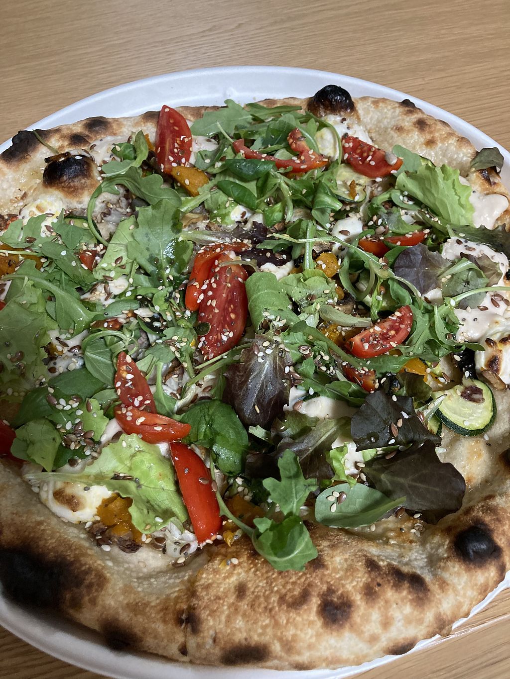 Er waren genoeg opties hier! Ze hebben vegan kaas, maar ook vegan mozzarella. De pizza smaakte heerlijk!