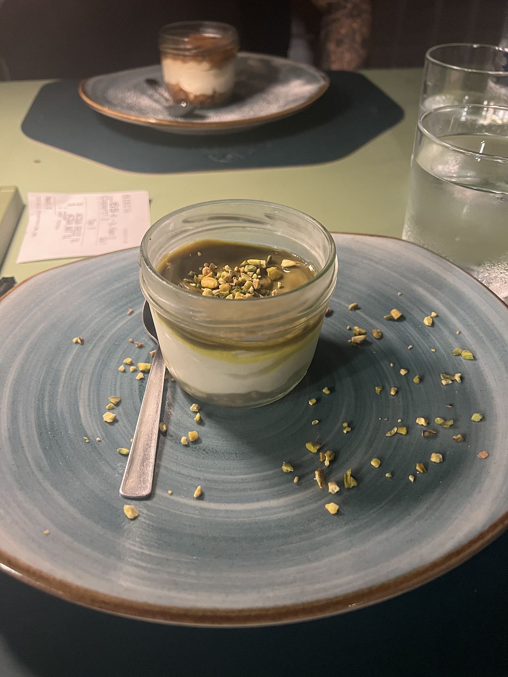 Pizza with dates, olives, tomatoes and vegan mozzarella cheese. Sounds amazing and also tastes amazing. Price was 10,50€ it’s ok.
