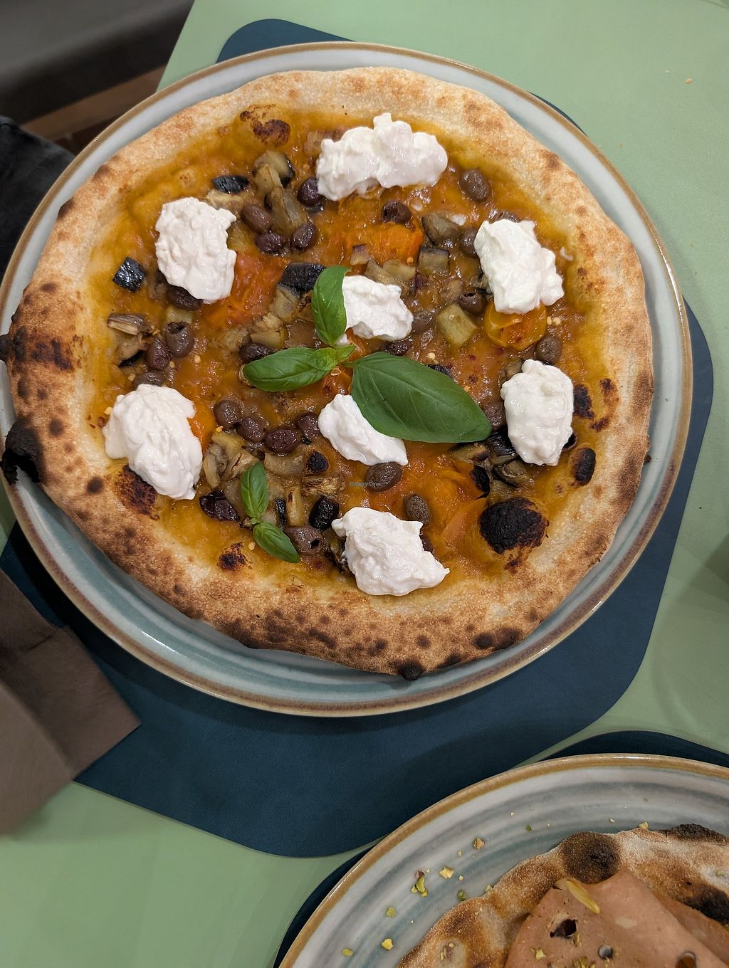 Noi abbiamo preso la Margherita vegana (attualmente non a menu) con la mozzarella di Dreamfarm, e la botanica con verdure di stagione e crema di legumi. Impasto ben cotto, croccante e morbido. Staff disponibile e cordiale, locale curato, prezzi in linea con le pizzerie della zona, servizio rapido (era un venerdì sera).