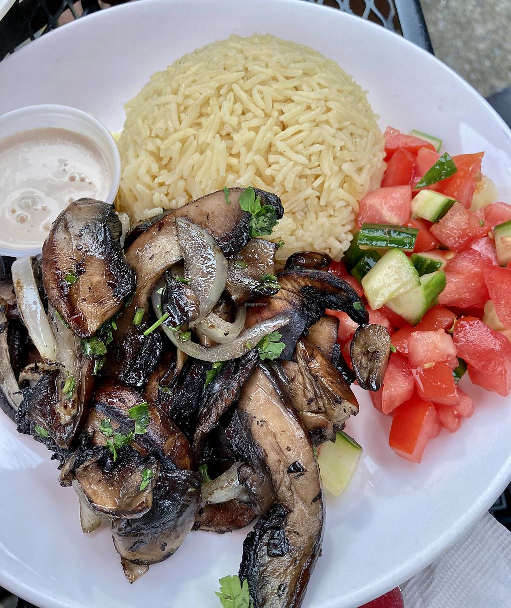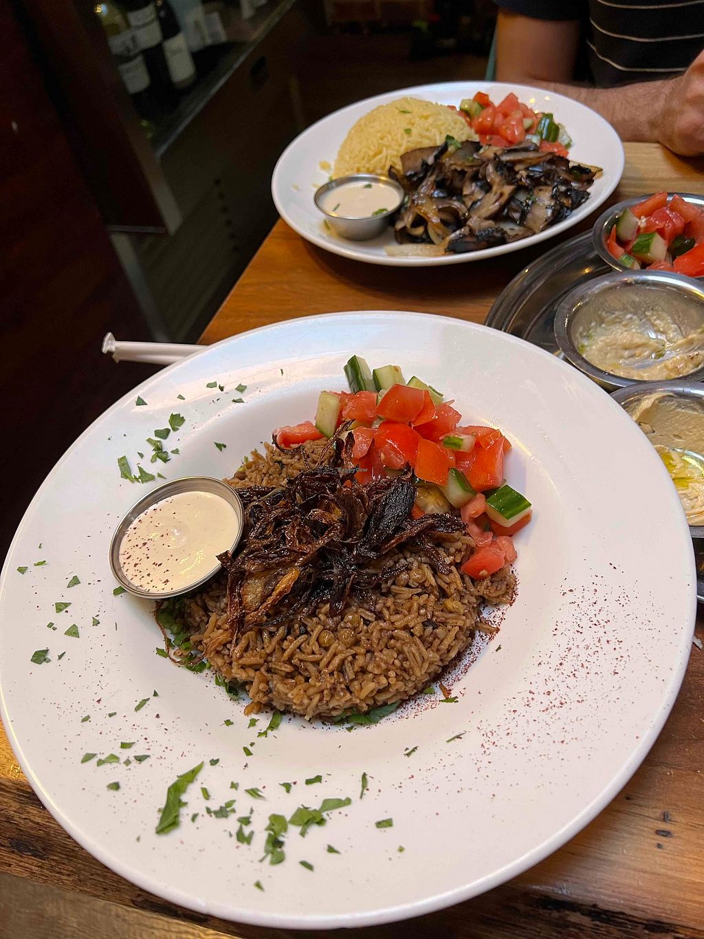 The Mujaddara (front) and the Vegan Shawarma (back).
