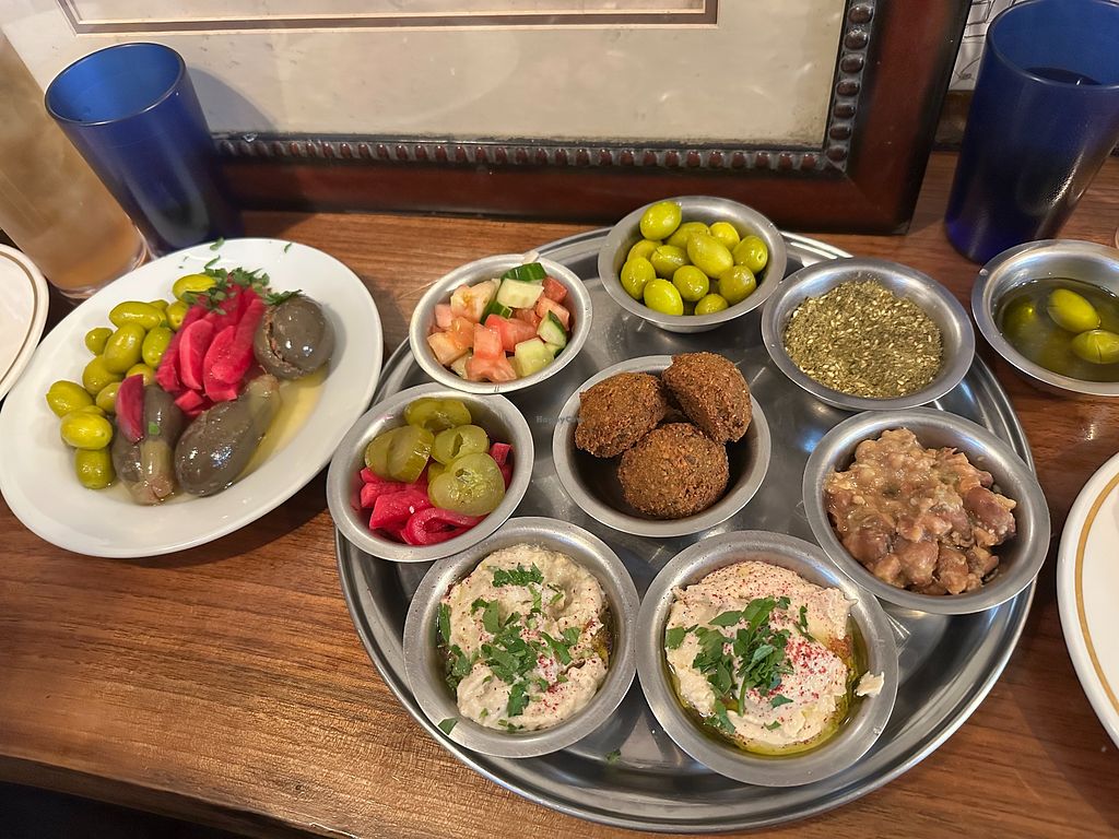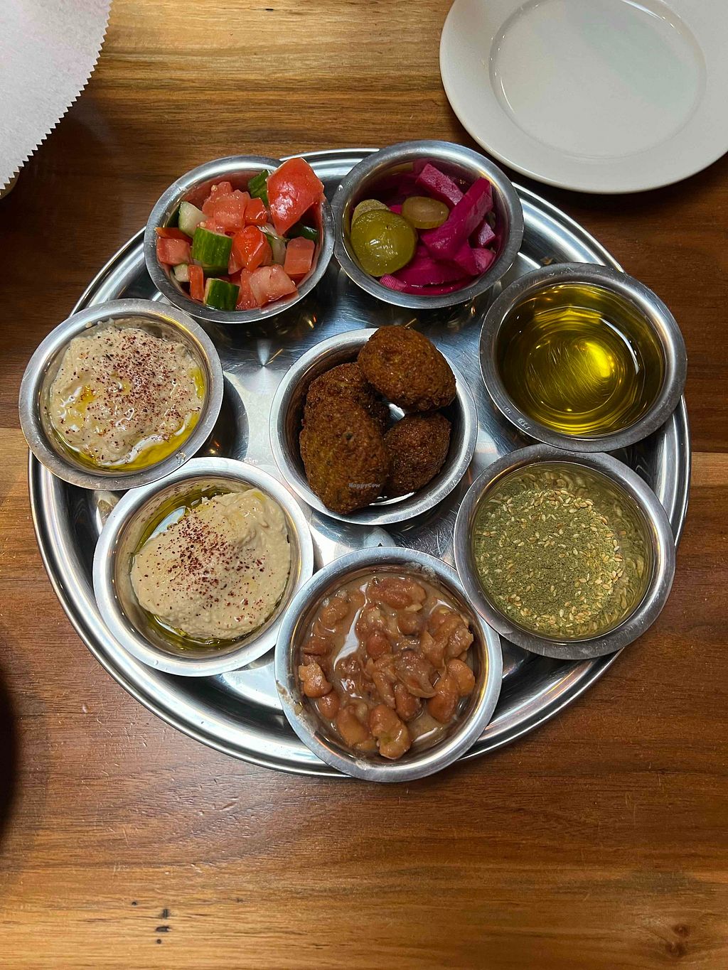 The amazing Futur Medley (all vegan). Counter-clockwise: Babaganoush, …